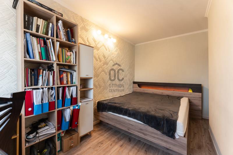 Eladó egy 76 m²-es, 3+fél szobás, erkélyes lakás a Víziváros kedvelt részén, egy tízemeletes társasház 8. emeletén. A lakás elsősorban nagycsaládosok számára ideális, de mindazoknak is tökéletes választás, akik központi elhelyezkedés mellett kényelmes, jól szeparált életteret keresnek.Főbb jellemzők:Teljes körű felújítás 2022-ben (burkolatok, szaniterek, nyílászárók, beltéri és bejárati ajtók cseréje)Tágas, világos terek, praktikus elosztásHatalmas konyha-étkező beépített bútorzattal (a vételár részét képezi)2 db beépített szekrényAkadálymentesített épület, két bejárattal, lifttelSaját, zárható tároló közvetlenül a bejárat előttIngyenes parkolás az épület előttMűszaki extrák:Bővített villamoshálózat (32A), rézvezetékezés, energiatakarékos LED világítás minden helyiségbenMűanyag nyílászárók redőnnyel, rovarhálóvalKlímaberendezésBelső szigetelés a szülői háló egyik falánKádas fürdőszoba törölközőszárítós radiátorral és modern világítássalJárólapozott, redőnnyel ellátott erkélyElhelyezkedés:A lakás három égtáj felé néz, így egész nap természetes fényben úszik. A környék csendes, mégis kiváló infrastruktúrával rendelkezik – iskola, óvoda, boltok, buszmegállók pár perc sétára.Közös költség: 14.500 Ft/hóEz az ingatlan egy igényesen felújított, jól átgondolt elosztású lakás, ahol minden családtagnak jut saját tér – ritka lehetőség a város ezen részén.Környék:Csendes, társasházas övezet, központhoz, főúthoz, autóbusz-megállóhoz közel. Az infrastruktúra kiváló,bevásárlási lehetőség, orvosi rendelő, gyógyszertár, posta, kisebb szolgáltató egységek, könyvtár a háztól gyalogosan mind pár perc alatt elérhető. Sétáló utca 600m-re található, legközelebbi bevásárlási lehetőség az Ineterspar áruház.Megközelíthetőség:A lakás elhelyezkedésének köszönhetően tömegközlekedéssel is nagyon könnyen megközelíthető.Parkolás a ház környékén ingyenes.Tömegközlekedéssel is nagyon könnyen megközelíthető a 14,14/G,22, 23,23/E,40,42,44-es autóbusszal.ELADÓ, 76m2, #lakás, #3+fél szoba, #felújított, #saját tároló, #légkondicionáló, #erkély, #beépített bútorok,Ez az ingatlan a \"Felező csomag\" megbízási portfólióhoz tartozik. Részletek az Otthon Centrum weboldalán.