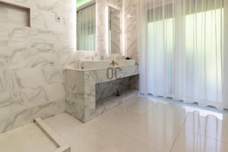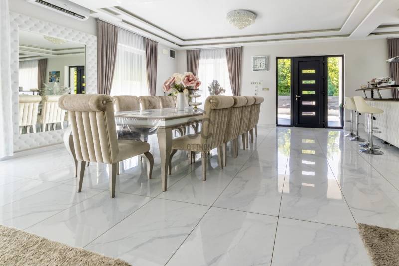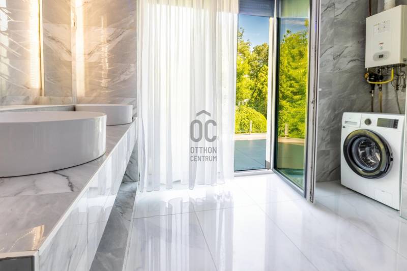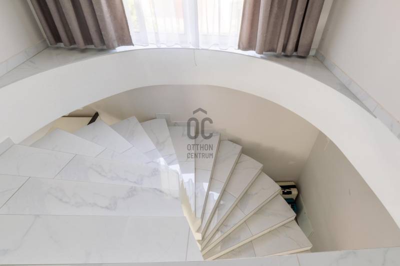 Új tulajdonosát keresi egy nagyszerű adottságokkal rendelkező, luxus igényeket is kielégítő, kétszintes, buttó 300 m2-es családi ház a III. kerületben!Ha nagyon kedvelt és keresett környéken szeretné megtalálni új, modern otthonát, ezt a házat feltétlenül nézze meg!AMIT A HÁZRÓL TUDNI KELL:- A két szintes lakóház 2022-ben épült egy parkosított, 823 m2-es telken.- Falazata Porotherm 30 X-therm tégla, 15 cm-es szigeteléssel. - Hasznos alapterülete 240 m2, a hozzá tartozó teraszok, erkélyek mérete 120 m2, bruttó mérete 300 m2.- Az épület luxus igényeket is kielégít, tulajdonosai extra minőségű anyagokat használtak az építésénél és a berendezéseknél is.- A szimmetrikus elrendezésű épület megjelenésese a modern stílus és a klasszikus elegancia tökéletes ötvözete. - Modern vonalvezetése, letisztult fehér homlokzata és a markáns, sötét színű nyílászárói prémium megjelenést kölcsönöznek. - Az épület a tájolásából adódóan, körbenapozott, szobái tágasak és világosak.- A műanyag ablakok elektromos, alumínium redőnnyel felszereltek.- A 120 m2-es földszint felosztása: hatalmas amerikai konyhás nappali és étkező, fürdőszoba wc-vel.- A hatalmas nappalit és az emeletre vezető impozáns lépcsőt Carrarai márvánnyal burkolták, ami egyedi stílust kölcsönöz a belső térnek.- Földszinti lakótér 120 m2 + összesen 61,84 m2 terasz.- Az emelet felosztása: közös nappali, 3 erkélyes szoba, közlekedő, fürdőszoba wc-vel.- Emelet 120 m2 + összesen 60 m2 terasz.- A fűtést és a meleg vizet kondenzációs kazán biztosítja padlófűtéses hől-eadással, így nincsenek látható fűtőtestek a házban.- A hűtésről minden szobában klíma gondoskodik.- Az ingatlan logikus elosztása és térkihasználása miatt kényelmes életteret biztosít.- A kert szépen gondozott, automata öntözővel, hátsó intim kertjében grillező lett kialakítva.- A térkövezett előkertbe gépkocsival széles kapun keresztül lehet beállni, ahol 6 autó számára van parkolási lehetőség.- A beépített bútorok - gépesített konyha a vételár részét képezik, a többi prémium kategóriájú bútor megegyezés tárgyát képviselik.KÖRNYÉK és KÖZLEKEDÉS:- Budapest III. kerülete, Rómaifürdő közkedvelt családi házas övezete.- A környék kimondottan családias jellegű, biztonságos, rendezett, csendes, tele zöldterületekkel, kutyabarát parkokkal, játszóterekkel. - A közlekedés a területen jó, a háztól 6 perc sétára található a 134-es, 34-es, buszok és a a H5-ős hév megállója.- Budapest egyik legszebb strandja a Római Strandfürdő 2 percnyi séta távolság.- A Római-part / Duna part 900 méter a háztól, ahol számos étterem és kulturális programok széles választéka várja a kikapcsolódni vágyókat.- Aldi, Spar, Lidl és a Csillag Center bevásárló központ pár perc alatt elérhető.- A Kisvirág Bölcsőde 900 méterre, Óvoda 400 méterre, a MOA Magán Általános Iskola 135 méterre található.- Számos neves iskola, óvoda, sportközpont és egészségügyi intézmény található a közelben.AZ INGATLAN MEGTEKINTHETŐ:- Személyesen,- Online, személyes bejelentkezéssel.FINANSZÍROZÁSBAN ONLINE ÜGYINTÉZÉSSEL IS SEGÍTÜNK!- Többszörösen díjnyertes irodánk hitelszakértői 20 éves szakmai tapasztalattal várják, előre egyeztetett időpontban akár normál munkaidőn kívül is.- Bank-független Hitel Centerünk díjmentesen versenyezteti minden bank és hitelintézet kínálatát, hogy önnek a legmegfelelőbb konstrukciót megtaláljuk.- Egyedi igényekre szabott, csak nálunk elérhető egyedi ajánlatokkal, fogyasztóbarát lakáshitelekkel, babaváró hitellel, teljes körű CSOK PLUSZ ügyintézéssel állunk rendelkezésére.Érdeklődés esetén VÁROM HÍVÁSÁT a hét minden napján!
