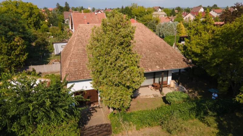Eladó Sződligeten, csendes, átmenő forgalomtól mentes utcában található, családi ház! A ház 1982-ben épült téglából, cserép fedéssel, a korát megelőző tervezéssel, nagy ablakokkal, világos terekkel.A fűtést és a melegvizet gázkazán, A+-os gázbojler biztosítja, de kiegészítésnek van egy villanybojler is, ill. a régi vegyestüzelésű kazán is meg van még, bár már rég nem használták.Van éjszakai és ipari áram is az ingatlanban.A ház kertkapcsolata egy 21 m2-es fedett teraszról nyílik.Autónknak van beállási lehetőség is és egy garázs, amit jelen pillanatban tárolásra használnak.Az udvaron van egy rendezetlen funkciójú épület (48 m2), aminek már levették a tetejét és az volt a terv, hogy csinálnak még egy dupla garázst, de ideális lehet egy külön garzon kialakítására is, ha valaki több generációban gondolkodik.A lokáció kiváló, csendes zsákutca legvégén található a ház, saroktelken, ahol az ingatlan mellett van egy nagy zöld terület, amit a Tulaj gondoz és gyerekek, unokák ki szoktak menni játszani oda is.A ház korszerűsítés után, boldog otthon biztosíthat egy szerencsés Családnak! Az ingatlan tulajdon lapi besorolása: kivett lakóház, udvar és rendezetlen funkciójú épület (belterület).A környékről:• Bölcsőde, iskola, óvoda, orvosi rendelő, ABC, templom, posta, bank, piac, gyógyszertár, kávézó, vasútállomás, buszmegálló gyalogos távolságra találhatóak.• A közelben fekvő sződligeti Duna-parti szakasz számos szórakozási lehetőséggel rendelkezik: futballpálya, étterem, szabadtéri színpad, Budapesttől Dunakanyarig tartó bicikliút, kishajó-kikötő, horgásztó, patak, lovarda• Jó közlekedés: vonat és az M2-es autóút néhány percnyire, Budapest mindössze fél óra alatt elérhető vonattal vagy autóval. A 10 km-re lévő Vácra buszjáratokkal vagy vonattal 15 perc alatt eljutunk.További információért forduljon Hozzám bizalommal!Kérje e-mailben vagy SMS-ben a linket, ahol a legtöbb kép és a videó is fent van!Amiben segíteni tudjuk ingatlanvásárlását:- jogi háttér- földhivatali ügyintézés- ingyenes, bankfüggetlen hitelügyintézés (CSOK és Babaváró ügyintézése is)- energetikai tanúsítvány elkészítése- biztosítás- belsőépítész