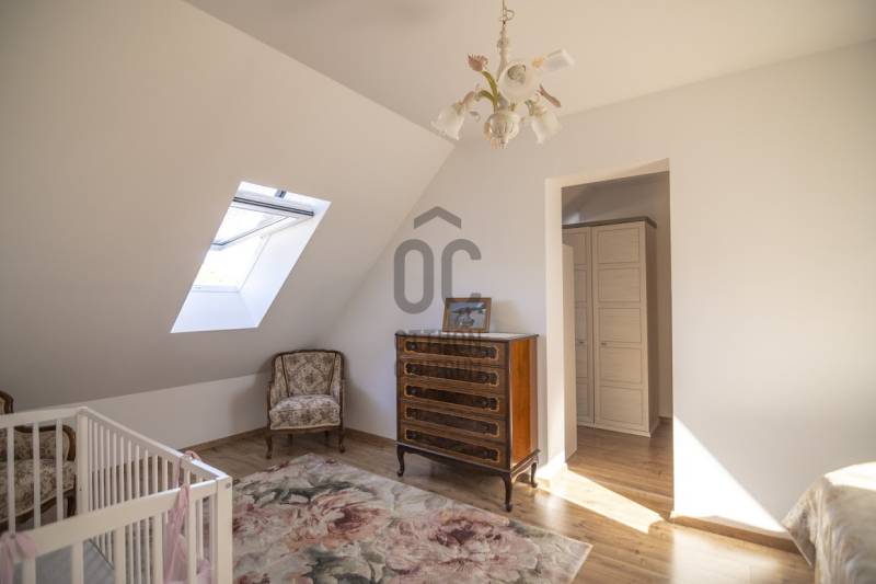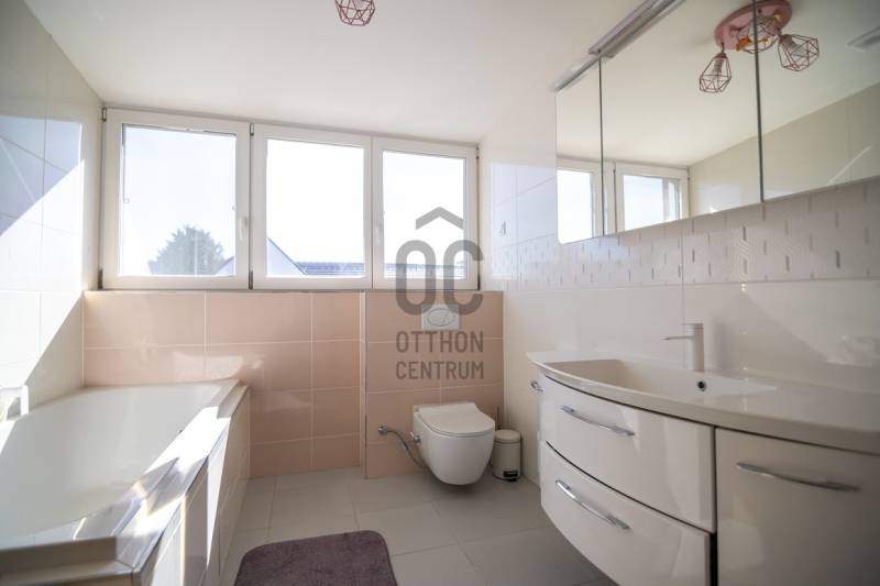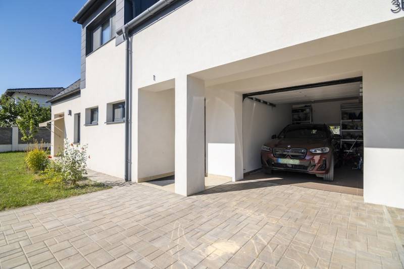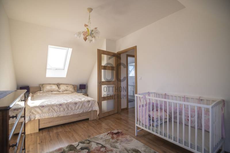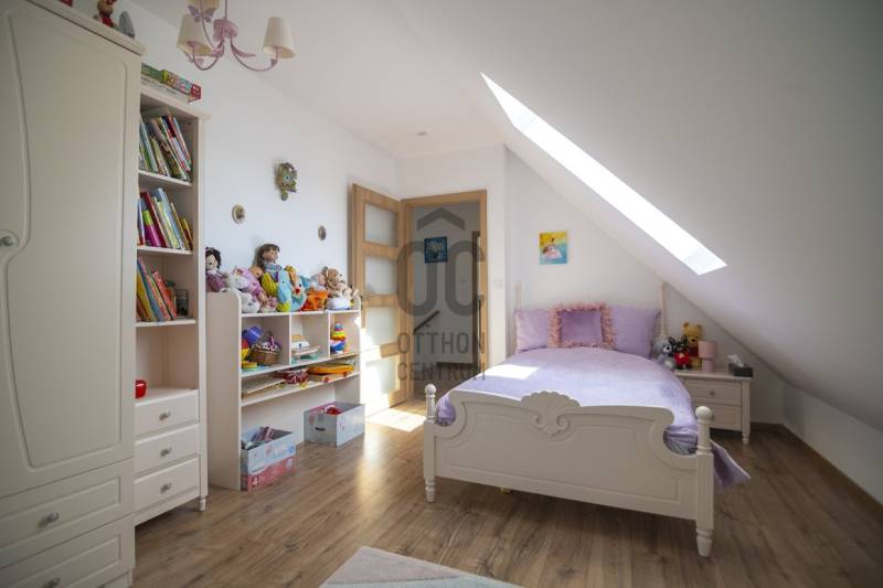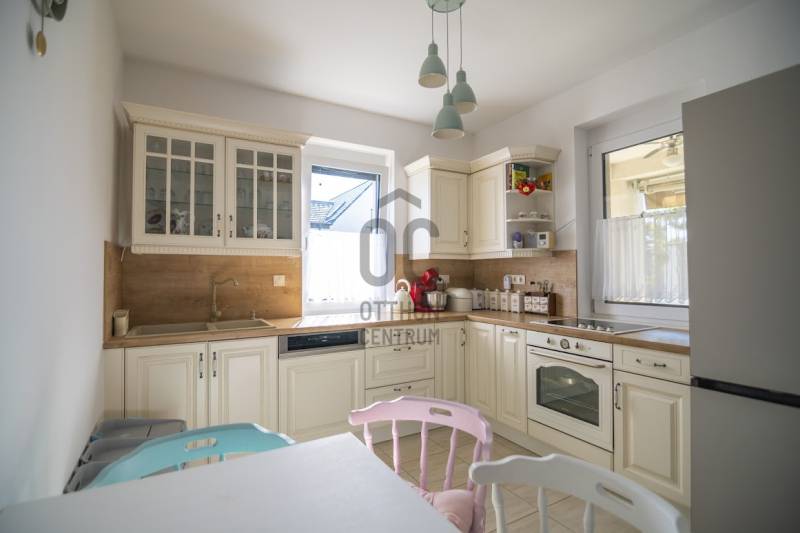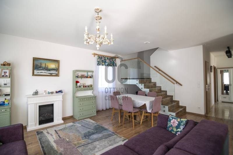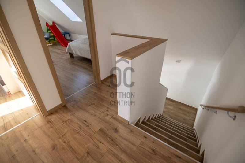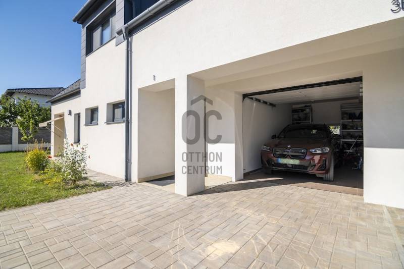 Budafok kedvelt részén, családi házas környéken, új építésű ingatlanok szomszédságában eladó egy 2023-ban épült, nettó 150 m2-es (bruttó 180 m2-es), nappali + 4 szobás ikerház-fél. Műszaki tartalom: - Energetikai tanúsítvány: A+- Napelemes tetőcserép- Hőszivattyús padlófűtés- Mennyezeti hőszivattyús fűtés- Rekuperátoros szellőztetőrendszer előkészítés- 38 cm-es Porotherm tégla falak, 10 cm-es grafitos szigeteléssel- 3 rétegű üvegezéssel rendelkező antracit műanyag nyílászárók- Elektromos alumínium redőnyök, rovarhálóval- Elektromos autótöltés előkészítés- Riasztórendszer előcsövezve- Kábel TV, internet- Prémium minőségű parketta (10 mm vastag)- Garázs, térkövezett kocsibeállóElrendezése: Földszint: - nappali (27 m2), kertkapcsolatos terasszal (7 m2)- étkező-konyha (9 m2), a nappalival egy légtérben, prémium minőségű konyhabútorral és beépített gépekkel (mosogatógép, sütő, főzőlap)- dolgozószoba (10 m2)- fürdőszoba zuhanyzóval (5,5 m2), kiváló minőségű szaniterekkel- előszoba (8 m2)- kamra (4 m2) - lépcső és lépcső alatti tároló (1 m2)- garázs (18 m2)Emelet: - 3 hálószoba (11 - 11 - 11 m2)- 2 gardrób (4,5 - 4,6 m2)- fürdőszoba káddal (7 m2)Kert: - füvesített, 8 gyömölcsfa- 100 m3 termőtalaj került elterítésre- esővíztároló- 2 db. kerti csap (teraszon és a kertben). Infrastruktúra: - Buszmegállók sétatávolságra- Óvoda, iskolák a közelben - Budafok városközpont gyorsan elérhetőVadonatúj ajánlat!További részletek és a megtekintés miatt keressen bizalommal! Hétvégén is hívhat.
