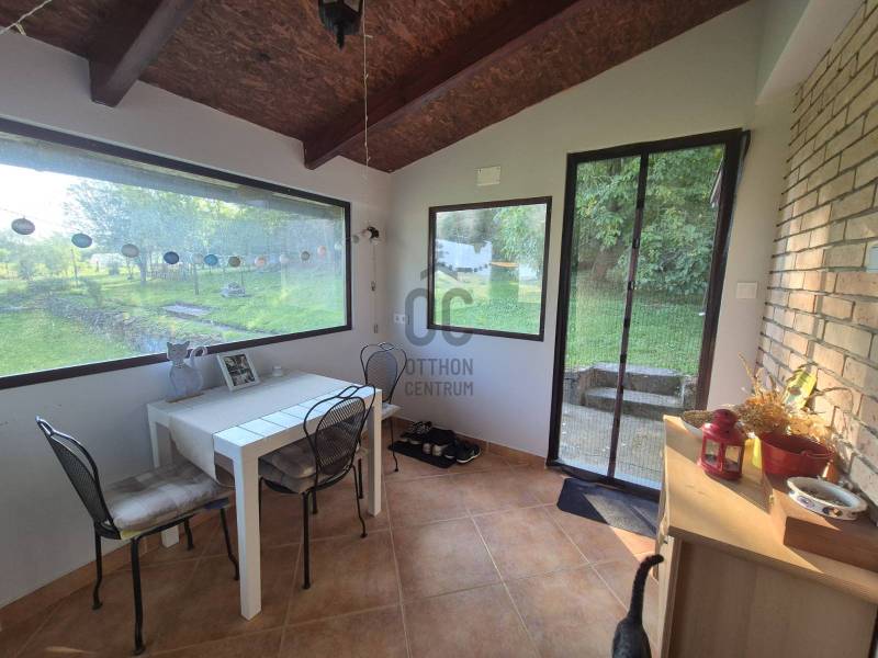 Legyen egy saját kis birtoka, saját erdővel BALATON-FELVIDÉKEN!Balaton-felvidéken, Tapolcától 4 km-re, a mesés ikonikus hegyek között található a Haláp-hegy, amely az összes hegy közül a legfiatalabb mostohagyerek, az elbányászott bazalt képződményével, és a legfiatalabb turista attrakciójával, a kilátóval, a szoborparkkal - Zalahalápi Stonehenge-vel, és a tanösvénnyel. Haláp-hegyen eladó, vadregényes, erdős kis birtok, lakható házzal, amely egy helyrajzi számon található, össz.mérete: 5480 nm. A területen található egy kb. 1980-as években téglából épült ikerház, amely 2 szintes + boros pincés. A ház lakható hasznos összterülete cca. 60 nm. A ház közvetlen környezete egy kb. 1000 nm füvesített, sziklakertes gondozott, füvesített, parkosított terület, teraszos bazalt fallal a kertben, melyen található egy különálló garázs is. A házból közvetlen kertkapcsolattal a saját erdőbe lehet felmenni, hatalmas szikla, bazalt tömbök között egészen a tanúhegy tetejére, ahonnan csodálatos a kilátás a többi tanúhegyre és részben a Balatonra is. Az erdőben akácfa, tölgyfa, bükkfa, és kőris adja a hűs árnyékot, a kellemes mikroklímát, melyben elveszve különleges énekes madarakat hallgathatunk. Továbbá kis vadak, szarvas, őzbak illetve vaddisznók is élnek. A Haláp-hegy tetején tanösvényre jutunk, mely egyre közkedveltebb kiránduló és turista csalogató útvonal lehet mind kicsiknek és nagyoknak is. Az utcában több holland tulajdonosnak van ingatlana, klasszikus tornácos, oszlopos teraszokkal, szőlővel. Gondozott, gyönyörű szép környezet, mind az utca, mind az itt lévő tulajdonosok ingatlanjai.Közmű: villany, ( 25 A), vezetékes víz is bekötve a házba. Az alsó szinten található egy kertkapcsolatos, tágas látványablakos előtér. Szinte belátni az egész kertet. Innen közvetlen a kert hátuljára tudunk kilépni, ahol a garázs van, és itt már a saját erdőbe tudunk felmenni. Ezt az előteret akár télikertnek is használhatjuk. Továbbá a házban van még egy kerámia burkolatos nappali-konyha, egy zuhanyzós fürdőszoba mellékhelyiséggel. A fűtés kandallóval megoldott. ( boylerről megy a melegvíz). A tetőtér a ház külső lépcsőjén közelíthető meg. Itt van egy kis előtér; egy kellemes tetőtéri szoba / velux tetőtéri ablakkal, gyönyörű szép kilátással a kertre és a Keszthelyi-medencére, és egy kis helyiség, amiben kialakítható egy kis mellékhelyiség is kézmosóval. A fűtés a tetőtérben elektromos panellal megoldott. A tetőtér teljesen le van szigetelve és lambéria burkolatos.A ház alatti boros pince két helyiségből áll. Egy előkészítő helyiségből, ami le van betonozva. A belső helyiségben tárolhatók a borok. Ebből a helyiségből kialakítható akár egy szauna is, vagy pihenő borkóstoló terem. A kertben található egy bepolcozott fém garázs, egy autó beállási lehetőséggel, jelenleg kerti szerszámokat tárolnak benne. A szennyvíz zárt rendszerrel megoldott.A kertből nagyon szép panoráma nyílik a szemközti hegyekre, a Somló hegy tetejére, a Keszthelyi medencére. Vannak hatalmas diófák, gyümölcsfák, kis sziklakert is.Az ingatlan lakható, költözhető állapotú. Szigetelés nincs rajta. Gépkocsival a ház előtt meg lehet állni a kialakított lugasos alatt. Autóval be lehet állni a garázsba és a kertbe több autó is elfér. Az ingatlan jól megközelíthető, részben aszfaltos majd murvás, földes úton történik. Több szomszéd állandó jelleggel kint lakik. Tapolca városa 4 km-re van a háztól, ahol minden van, így munkalehetőség is adott. Ezen kívül szolgáltatások, kórház, orvos, bank, wellness szálló, posta, cukrászda, üzletek. A Balaton part 13 km-re elérhető (Badacsony, Szigliget). Keszthely fél órás autóútra elérhető. A környéken számos kirándulási, vadászási, horgászási és felfedezni való lehetőség adott. Elérhető az Országos Kéktúra útvonal, illetve Badacsony, Szigliget, Szent-György-hegy, a többi tanúhegy, Sümeg, Somló, Kapolcs és a Művészetek völgye,a Káptalantóti piac, mind, mind a közelben van. Az épületbe be lehet jelentkezni állandó lakhatásra is.Az ingatlan a Földtörvény hatálya alá tartozik, így kifüggesztés köteles!Hívjon le ne maradjon róla.