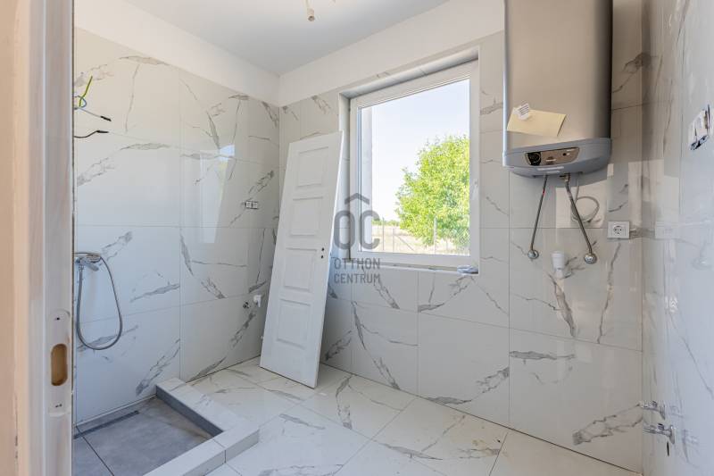 KIEMELT AJÁNLAT!Kiváló referenciákkal!A fényképeken korábban felépített és értékesített referenciák láthatók.A látványtervek és a telekről készült képek mutatják a jelenlegi ingatlant.ÚJONNAN ÉPÜLŐ LAKÓPARKBAN, a Waldorf iskolától 2 utcára épül ez az ÚJÉPÍTÉSŰ IKERHÁZ.Egymással mindössze egy tárolónál érintkezve, teljesen SZEPARÁLT KERTRÉSZEKKEL.A helyiek által kedvelt CSENDES, ZÖLD UTCÁBAN, KITŰNŐ MINŐSÉGBEN készül, 400 m2 saját telken.Itt biztosan megtalálja a nyugalmat, aki arra vágyik.Ezen a területen nincsenek és nem is lesznek látható kábelek, ez egy rendezett, újonnan épülő lakópark lesz.Az épület 30cm vastag fallal épül 15cm szigeteléssel, műanyag nyílászárókkal 3 rétegű hőszigetelt üvegezéssel, Terrán Zenit Resistor Onix tetőcserép fedéssel, hőszivattyú kiállással, padlófűtéssel, napelem-, riasztó-, és klímaelőkészítéssel, illetve egy ajándék klíma egységgel a nappaliban.HŐSZIVATTYÚ vagy NAPELEM opcionálisan választható az árban.A hálószobákba laminált padló, a többi helyiségbe járólap kerül, de ez most még igény szerint módosítható.A FŰTÉSE és a FENNTARTÁSA KEDVEZŐ, a korábbi referenciákkal kapcsolatos tapasztalatok alapján a TELJES HAVI REZSI legfeljebb 40-45 ezer forint, és napelemmel REZSIMENTES tud lenni az ingatlan.Napelem beszerzését és beszerelését az ár megbeszélés alapján tartalmazhatja.Fúrt kút is található a telken, bemért, iható vízzel.Az építés jelenleg is zajlik, ezért a BURKOLATOKAT Ön még KIVÁLASZTHATJA, igényeit megadhatja, így a lehető legjobb időben van.Az egyik fél már elkelt, a másik még elérhető.Nettó 99 m2 lakótér, ami az alábbiak szerint választható:-Nappali+2 hálószoba, 2 fürdőszoba és garázs, vagy-Nappali+3 hálószoba, 2 fürdőszoba és autobeálló.(Igény szerint a garázs kérhető szobaként, így nappali+3 hálószobás lesz az ingatlan, ebben az esetben egy fedett, viacolorozott autóbeállót is tartalmaz az ár.)10 percen belül szinte minden elérhető: busz, ovi, suli, boltok posta, cukrászda, virágos, gyógyszertár, benzinkút, stb.ÁTADÁS 2026. május 31-ig.Minimum 10% foglalóval és 20% önerővel LEKÖTHETŐ.3% Otthon Start, CSOK, Hitel, Babaváró és illeték visszatérítés igényelhető rá.Nagyon jó választás mind az ingatlan, mind a lokáció.Hívjon bizalommal a hét bármely napján!Amennyiben saját ingatlanja eladásához a mi irodánkat választja, ezt minőségi szolgáltatások és kedvező feltételek mellett vállaljuk.Az ingatlan CSOK igénybevétele esetén illetékmentes!CSOK, Babaváró, Lakásfelújtás, Támogatott hitelek? Irodánk minden állami támogatás és lakáshitel igény kapcsán DÍJMENTES és SZAKÉRTŐ segítséget nyújt!Profi ügyvédi hátteret is biztosítunk.