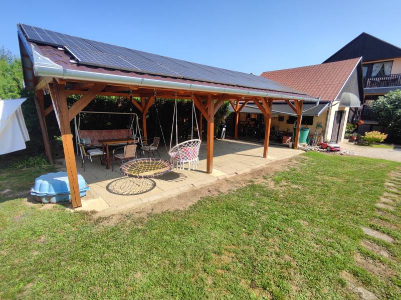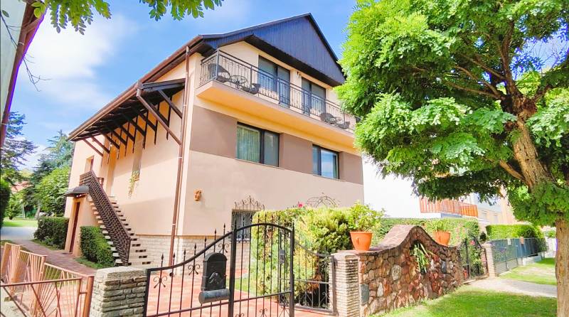Kiemelt megbízás kizárólag irodánk kínálatában!A 795 m2-es telken elhelyezkedő ingatlan Hévíz egyik kedvelt csendes utcájában található. A jelenleg magánszálláshelyként is működő családi ház kiválló választás befektetésnek vagy akár több generációs lakhatásra is.A 88 m2-es két bejárattal rendelkező középső szinten, lépcsőház, közlekedő, előszoba, tágas nappali konyhával és étkezővel, kamra, fürdőszoba, WC, 2 hálószoba, erkély kapott helyet.A külső és belső bejárattal is megközelíthető 113 m2-es alsó szinten található nagy tároló, kazánház, illetve egy apartman melyben egy konyha-étkezővel, kamra, közlekedő, fürdőszoba/WC, 2db fél szoba, terasz került kialakításra. A legfelső 83 m2-es szinten 2 apartman található, az egyikben konyha-étkezővel, hálószoba, fürdőszoba, WC, erkély. A másikban konyha-étkezővel, 2 hálószoba, Fürdőszoba, WC erkély lett kialakítva.A ház melegéről gáz és vegyestüzelésű kazán, a középső szinten ezek mellett cserépkálya is gondoskodnak, a nyári melegekben pedig klímák a hűtésről.Az udvarban továbbá található egy fedett tásalgó, garázs és 3 fedett kocsibeálló.A ház pár éve 10cm-es külső szigetelést, a kocsibeállók tetején pedig 4 KW-os napelem rendszert kapott.A bútorok megállapodás szerint.Ha a hirdetés felkeltette figyelmét, megtekintés céljából hívjon bizalommal!Az ingatlan a központtól autóval 1 percre, Keszthely központja 8, a Balaton pedig 9 km-re található! Több gyógyfürdő is található a környéken.Így bármely évszak legyen, bármely korosztály számára kikapcsolódási lehetőséget jelenthet ezen fürdők SZÉLES SKÁLÁJÚ WELLNESS SZOLGÁLTATÁSAI! Csodálatos zöld környezetben várja Önt a világon egyedülálló Hévízi gyógytó. A tó körül elterülő erdős parkok és a város védett növényvilága a nyugodt pihenés és gyógyulás záloga. A fürdőváros tiszta levegője és barátságos atmoszférája, az itt-élők vendégszeretet mind fokozzák a gyógyhatást. A tó egész évben várja vendégeit, mivel a víz hőmérséklete télen sem csökken 22 C° alá, nyáron pedig eléri a 38 C°-ot is. A forrásbarlangból másodpercenként előtörő 410 liternek köszönhetően a tó vize három és fél nap alatt teljesen kicserélődik, ezáltal folyamatosan tiszta marad.