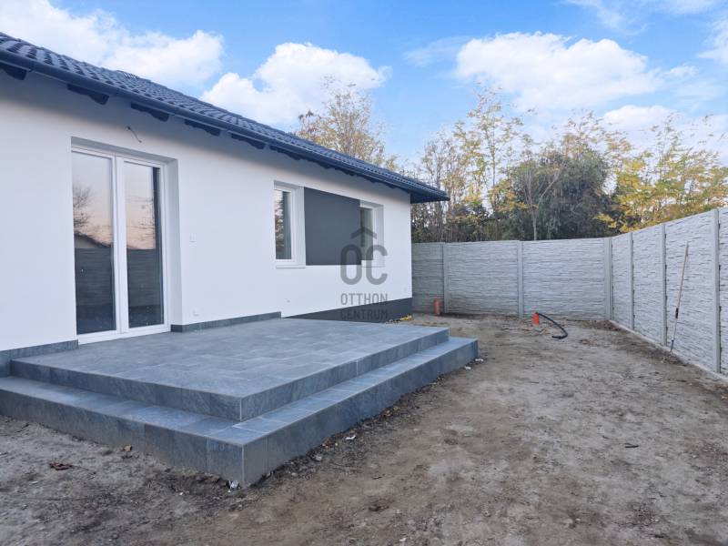 Szigetszentmártonban újépítésű, garázsos ikerház eladó✅️ téglaépítésű✅️ 15 cm külső hőszigetelés✅️ nettó 105,79 m2 + garázs✅️ hatalmas amerikai konyhás nappali (34.40 m2)✅ 3 nagy hálószoba (13.86 m2, 12m2 és 15 m2)✅️ háztartási helyiség✅️ két bútorozott fürdőszoba, ✅ két Geberit beépített tartályos wc✅️ fűtése: gázcirkó + padlófűtés✅ hűtő-fűtő klíma a nappaliban✅️ kulcsrakész állapot✅️ térkövezett kocsifelhajtó és járda a ház körül✅ tűzálló, fújt padlásszigetelés✅️ 11.55 m2-es burkolt terasz✅ antracit, elektromos wifi-s telefonról irányítható, \"okos\" garázskapu✅️ riasztó és kamera előkészítés✅️ aszfaltos utca✅️ telek kb 450 m2Hitel, CSOK, Otthon Start igényelhető.10 % önerővel elvihető! Duna-part 4-500 méter, Általános Iskola 350 méter, bolt, posta, buszmegálló 5 perc gyalogVárható átadás: kiburkolva, szinte azonnal költözhető.Újépítésű, de magánszemély építette, ezért jogilag használt ingatlannak minősül. Megbízható, magyar kivitelező.