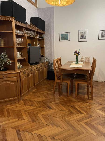 Tágas, erkélyes lakás a VI. kerület szívében – befektetésnek és otthonnak is kiváló!Eladásra kínálunk egy első emeleti különleges adottságokkal rendelkező, 99 m²-es, 4 szobás, téglaépítésű lakást Budapest egyik legkeresettebb részén, a VI. kerület frekventált környékén. A lakáshoz tartozik egy 3 m²-es hangulatos erkély, amely tovább növeli a komfortérzetet a város szívében. A lakás észak-nyugati fekvésű, tágas szobákkal és galériával rendelkezik. Az erkély és a szobák ablakai a Podmaniczky utcára néznek, amely másik oldalán a MÁV nyugati pályaudvari épületsora található, melynek zöldterületté alakítása folyamatos téma a budapesti közéletben. Az átalakítás esetén a lakás összes szobájának ablakai és erkélye zöldövezetre fog nézni. A társasház karbantartott, liftes, a belső udvar rendezett. A lakóközösség aktív, az idei évben köteleződött el a tetőszerkezet felújítása mellett, amelyet részben önkormányzati támogatással finanszíroz a ház. Elhelyezkedés:3-as metró és 4-6-os villamos: 5 perc séta72/73/76/70-es trolik, 105-ös és 210B buszok, valamint több éjszakai járat is egész éjjel közlekedikWestend Bevásárlóközpont: séta távolságraVárosliget, Margitsziget: tömegközlekedéssel könnyen és gyorsan megközelíthetőFőbb adatok:Alapterület: 99 m² + 3 m² erkélySzobák: 4 tágas és világos szoba, ebből egy galériávalBelmagasság: 3.7mFekvés: észak-nyugatiÁllapot: lakható, igény szerint felújítható (kisebb felújításon esett át 2 éve)Lift: vanFűtés: cirkó (gázkazán)Parkolás: utcai, lakossági engedménnyelKlíma: egy szobában bekötve, kültéri egység az erkélyenTulajdoni viszonyok:1/1 tulajdon, tehermentes Kinek ajánljuk? Nagycsaládosoknak, akik belvárosi, jól megközelíthető, mégis tágas otthont keresnek Befektetőknek, akik keresik a magas megtérüléssel bíró ingatlanokat a turisztikailag kiemelkedő környéken. A lakás könnyen ketté bontható, és külön-külön kiadható. (Lásd a mellékelt felújítási tervet) Kiadásra keresőknek – a lokáció és az elosztás garantálja a folyamatos érdeklődést, akár hosszú, akár rövid távonMegtekintés előre egyeztetett időpontban, akár hétvégén is lehetséges. Keressen bizalommal!