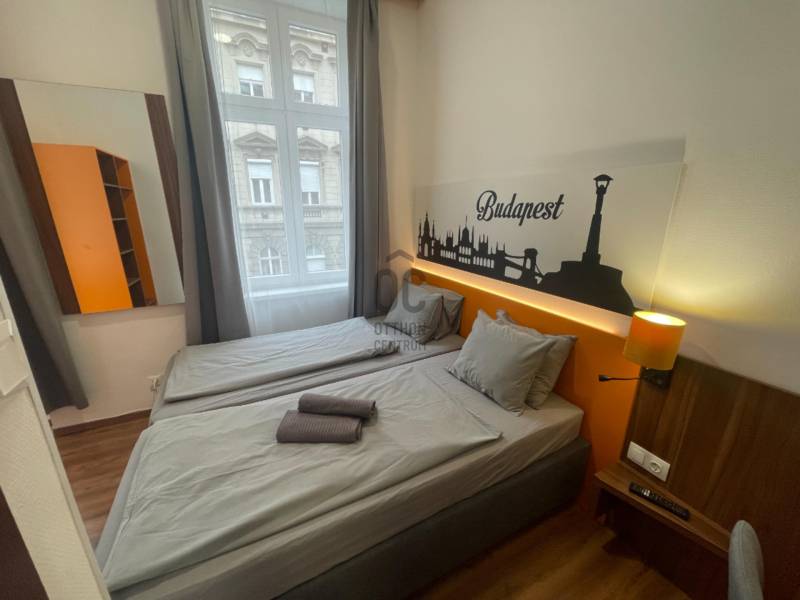 Rövidtávú kiadási engedéllyel!VII. kerület Rózsa utcában, az 1886/87-ben Gammel Ferenc megbízásából Schambach Károly építette kétemeletes eklektikus bérház első emeletén eladó egy rövidtávú kiadásra kialakított, nagyszerű lakás.Az ingatlan 136nm nagyságú és rövidtávú bérbeadási engedéllyel rendelkezik.Jól átgondoltan 6 különnyíló hálószoba fürdőszobával, egy nagy, közös konyha-étkező, valamint vendégek által használható szauna lett lett kialakítva.A szobák mind a közös térből nyílnak, egy kivételével utcai nézetűek.A kiadáshoz, egyedi dizájn alapján minden szoba felszerelt, bútorozott.Fűtéséről hűtéséről energia takarékos hőszivattyús berendezés gondoskodik.Kiemelkedő, hozammal működik jelenleg is, ellenőrizhető foglalásokkal rendelkezik hónapokra előre.Ajánlott befektetés azoknak akik saját maguk szeretnék üzemeltetni a jövőben, de ha hozam ingatlant keres akkor is egyedülálló lehetőség. Az ingatlant jelenleg is, nagy foglaltság mellett professzionális csapat üzemelteti akik örömmel vinnék tovább az üzletet!Érdeklődés esetén megtekintése a foglaltságtól függ!