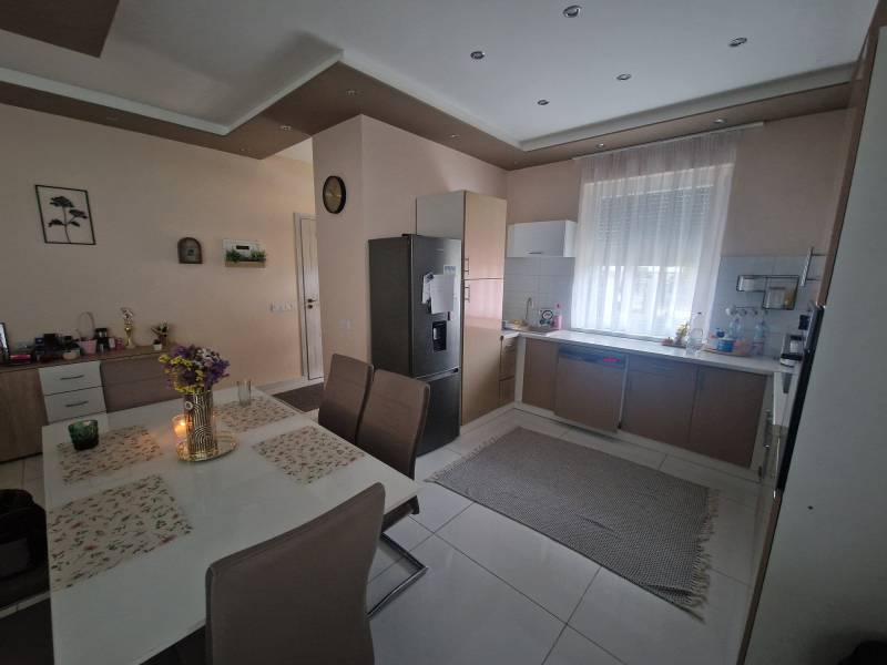 Eladó Dabas városunkban , önálló 93nm.-es lakótérrel+17 nm garázzsal újszerű családi ház.Az épület 4 éve épült ,téglából , 10 cm.-es szigeteléssel, minden újszerű még .Garázskapcsolat a lakótérrel , mely,fűthető .Az ingatlanra már csak egy szép szín , ami tetőfokára emelné .Telke sarki , két bejárat is biztosított így .Udvara parkosított, folyamatos a burkolása. Automata öntözőrendszerrel, fúrt kútról történik az öntözése a gyönyörű fűnek.Kis játszótér és tágas terasz biztosítja a család pihenését,kikapcsolódását.Kapuja egyedi kovácsolt vas. Elektromossága kiépítve.Az ingatlan amerikai konyhás megoldással 3 háló szobával épült meg, melyből az egyiket jelenleg gardrobe-nak használnak.Belső kialakítása modern kivitelezés. Tágas fürdővel rendelkezik.Konyhája gépesített.Fűtése kombi kazánról padlófűtés rendszerű.Nappalijából léphetünk ki a tágas teraszra. Ablakok szúnyoghálóval és redönnyel ellátottak. Terasz ajtó elektromos redönyt kapott.Érdeklődés esetén hívjon bizalommal:Sponga Mária067o431ooo7