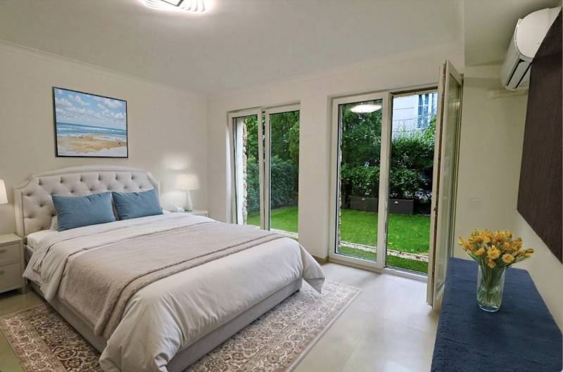 Ritka lehetőség a II. kerület egyik legkeresettebb részén! A Szpáhi utca csendes, elegáns környezetében kínáljuk eladásra ezt a teljesen új, még soha nem lakott, 44 nm-es földszinti lakást, amelyhez 10 nm-es, kizárólagos használatú kert tartozik.A lakás magas színvonalú felújításon esett át:- elegáns, magasfényű padló,- prémium kategóriás szaniterek,- külön WC és zuhanyzós fürdőszoba,- tágas előtér, rengeteg pakolási lehetőséggel, ahol a beépített szekrények nyitáskor automatikusan kivilágítanak,- modern, letisztult belső tér.- padlófűtés- A közös költség magában foglalja a meleg- és hidegvizet, fűtést, felújítási alapot, a medence, konditerem és szauna használatot is, amely 45.000 Ft./hó körül vanA társasház szintén kiemelkedő extrákat kínál:- wellness részleg hatalmas úszómedencével, szaunával, szoláriummal,- edzőterem és pingpong asztal,- igényes, gondozott környezet.A Rózsadomb ezen része különösen kedvelt, hiszen a környék a nyugalom és a városi kényelem tökéletes egyensúlyát nyújtja. Pár perc autóval vagy akár gyalogosan is elérhetők a Rózsakert Bevásárlóközpont, a Mammut Bevásárlóközpont, a Millenáris Park, a Margitsziget és a belváros kulturális, gasztronómiai kínálata. Ugyanakkor a környék parkos, zöldövezeti hangulatot biztosít, elegáns villákkal és modern társasházakkal.A lakás jelenleg üres, a képek között található berendezett szobák ötletet adhatnak a kialakításhoz.Ez a lakás ideális választás azoknak, akik kényelmet, eleganciát és exkluzív szolgáltatásokat keresnek egyedülálló lokációban – akár saját otthonnak, akár befektetésnek.