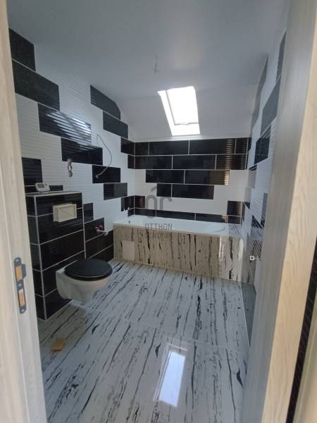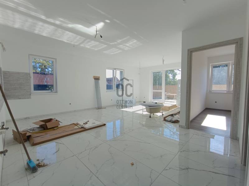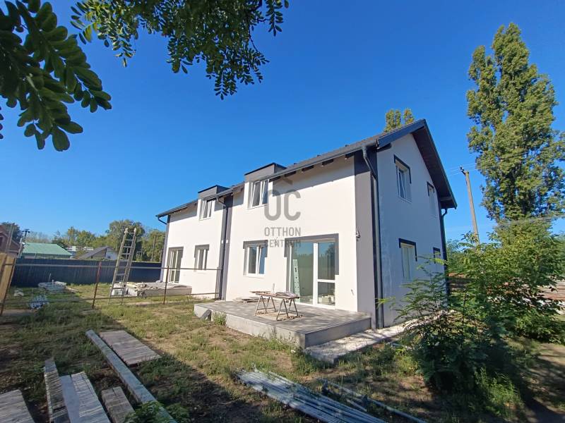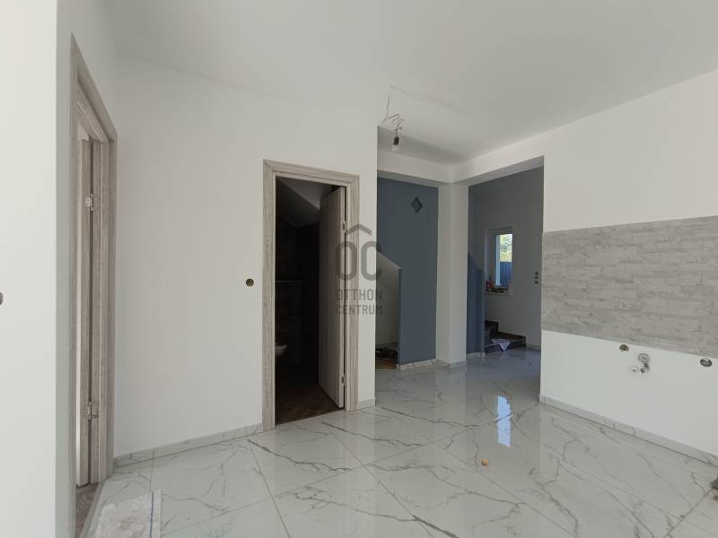 Vasadon, központ közeli, 3% os hitelre is alkalmas, új építésű ikerházfél eladó. 110 m2-en, amerikai konyhás nappali, 4 hálós, dupla komfortos kialakítással. Az ingatlanok saját utcafronttal rendelkeznek, így nincs átjárás egymáson, saját telke 280 m2. Az épület használatbavételi engedéllyel és társasházi alapító okirattal rendelkezik és azonnal költözhetőSzerkezete Porotherm 30-as téglából épült mely 10 cm-es grafitos szigetelést kapott, nyílászárói 3 rétegű műanyag szerkezetek. Energetikai besorolása: A+Földszinten előszoba, amerikai konyhás nappali, gépészeti helyiség, 1 kényelmes háló és zuhanyzós fürdő került kialakításra. Kertünket egy 14 m2-es teraszon keresztül érjük el. Emeletére kényelmes lépcsőn juthatunk fel, ahol 3 db 12 m2 körüli háló és egy kádas fürdőszoba kapott helyet. Fűtése hőszivattyúval és padlófűtéssel történik. Minden lakóhelyiségben klíma előkészítés található és természetesen H” tarifás mérőóra is van.Az ingatlan összközműves, gázcsonk a telken belül található.Vasad Budapesttől 15 percre található, élhető kedves település, az ingatlan elhelyezkedése kiváló, suli, ovi, bolt pár perc sétányira van.Díjmentes hitelügyintézéssel és jogi tanácsadással segítjük a vásárlását!