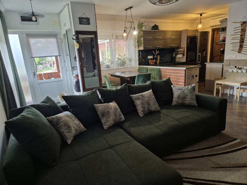 Kiemelt megbízás! Csak nálunk!Balmazújváros Lidlhez közeli utcában, eladásra kínálunk, egy 2020-ban kívül-belül felújított , nappali+2 hálós, bruttó 100 m2-es, kellemes hangulatú családi ház!Igazi OTTHON!Az ingatlan paraméterei:- 10*10-es kádárkocka felújítva- 1249 m2-es gondozott, rendezett parkosított kert- beton alapon, vályog falazat- műanyag nyílászárók, redőnnyel, rovarhálóval- Belső tereket átalakítottak, falakat bontottak- a tetőt 2015-ben felújították- 2020-ban 4,5 kw-os napelemrendszer került telepítésre, mellyel a teljes elektromos használatot kiváltják, klimatizált a ház- kicserélték a villanyhálózatot- az ingatlan teljes vízvezeték és szennyvízrendszerét kicserélték- Új konyha, beépített gépekkel- új burkolatok a fürdőszobában, WC-ben, a lakótérben, és a szobákban- új terasz 5 m2, burkolattal- utcafronton parkoló kialakítva, a garázshoz gyeprács tégla telepítve- önálló könnyűszerkezetes 36m2-es garázs- tárolók, melléképületek- gázcirkó fűtés radiátorokkal, vegyestüzelésű kazán- 2023-ban az ingatlan új kerítést kapott- A lakóépület külső díszítő téglaburkolatot kapott, új nemesvakolat- 4 db térfigyelő kamera, elektromos nagykapuAz ingatlan csendes, jól megközelíthető helyen található, közel a központhoz, a Lidlhez.Amennyiben további kérdése van, szívesen állok rendelkezésére!