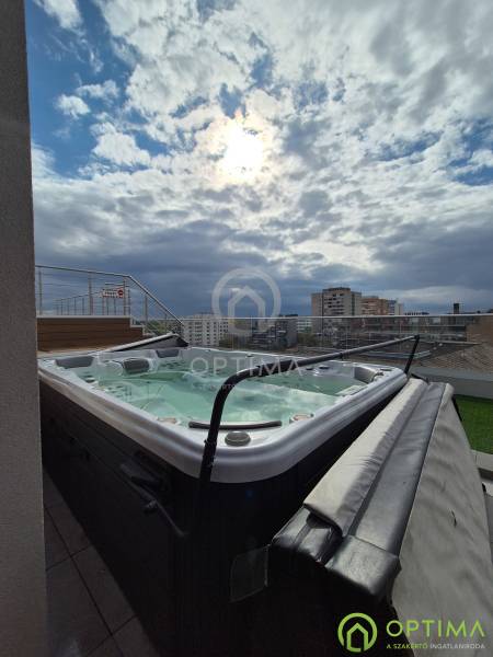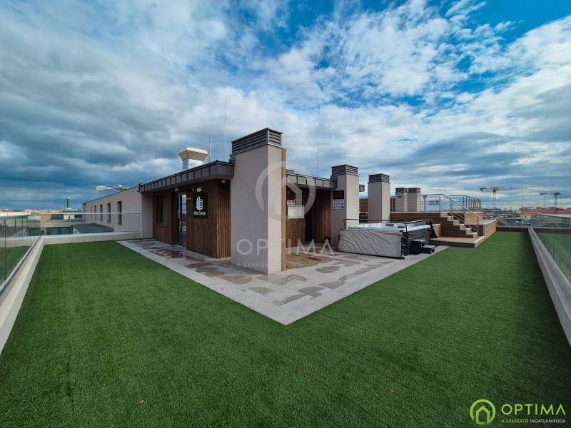 PANORÁMÁS ÚJÉPÍTÉSŰ LAKÁS KERESI ELSŐ LAKÓJÁT Megvételre kínálom ezt a 60 m2 hasznos lapterületű, LEGFELSŐ EMELETI téglalakást. Az ingatlant még nem lakta senki, ennek megfelelően teljesen bútorozatlan, így az első lakója teljesen igényének és stílusának megfelelően alakíthatja ki magának otthonát. A lakáshoz tartozik egy 9 m2-es erkély és egy 14 m2-es terasz is, melyekről a SZABADSÁG SZOBOR és a BUDAI HEGYEK panorámája tárul elénk. Az ingatlanhoz igény szerint megvásárolható a ház mélygarázsában egy autóbeálló, melynek ára 7,5 millió Ft, ezen felül egy tárolóhelyiség is, melynek ára 4,5 millió Ft. A beálló és a tároló csak együtt megvásárolható. A háznak a tetőterén a lakosok számára fenntartott WELLNESS részleg található (jakuzzi, szauna, úszómedence), melynek üzemeltetését és fenntartását tartalmazza a közös költség összege. Ezen felül ház maximális biztonsága érdekében kamerarendszer van kiépítve, illetve 0-24-es portaszolgálat üzemel. Ezen szolgáltatás finanszírozását is tartalmazza a közös költség összege. A lakás melegentartásáért hőszivattyú felel, 5 fok alatt pedig a fűtés átvált távfűtésre. Az ingatlan elhelyezkedését tekintve kiváló, gyalogtávolságra található a Corvin Pláza, valamint számos tömegközlekedési eszköz áll rendelkezésre a belváros és a Budai oldal irányába egyaránt.További részletekért és az ingatlan megtekintése miatt VÁROM HÍVÁSÁT akár hétvégén vagy az esti órákban egyaránt!