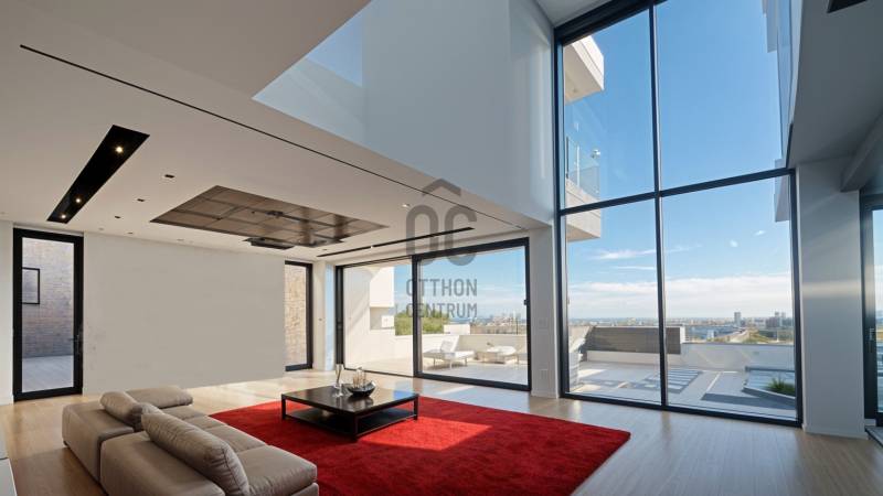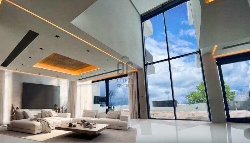 LUXUSVILLA – MODERN ÉLETSTÍLUS A XII. KERÜLET LEGSZEBB PANORÁMÁJÁVALA Budai-hegyek egyik legexkluzívabb részén épült ez a páratlan, modern luxusvilla, amely ötvözi a csúcstechnológiát, a letisztult, minimalista dizájnt és a természet közelségét.Két utcáról is megközelíthető, könnyű parkolással, sík bejáratokkal.Amerikai konyhás, hatalmas nappali (70 m²) közvetlen kertkapcsolattal, közel 50 m²-es napozóterasszal és lenyűgöző infinity medencével.Öt hálószoba, köztük egy különálló vendégszoba és egy panorámás, teraszos master lakrész gardróbbal és privát wellness-fürdőszobával.Tágas, 6 állásos garázs (130 m²), bőséges tárolóhely és kazánház.D-i tájolás, egész napos benapozottság, erdei mikroklíma, csend és friss levegő.Intelligens otthon, Fibaro okosvezérlés, Unifi AI biztonsági rendszer, prémium hőszivattyú, padló-mennyezet-fancoil fűtés/hűtés, hővisszanyerős szellőztetés.Kiépített napelem és szélgenerátor előkészítés, energiatakarékos és fenntartható üzemeltetés.Prémium nyílászárók, 5 rétegű üvegezés, okos-zár, proxy beléptető rendszer, gigabites üvegkábeles internet.A belső tér jelenleg 90% készültségű, így még lehetőség van a burkolatok, színek, beépített bútorok kiválasztására, hogy igazán egyedi otthon születhessen. A Tulajdonosnak számos kreatív elképzelése van a befejezést illetőleg, amelyet nyitottság esetén szívesen megosztana, és akár el is vállalná a megvalósítását!Telek: 1.010 m², teljesen kihasználható kerttelLakótér: ~ 280 m² + teraszok, garázs, tárolók ~ 450m²Ez a villa azoknak szól, akik kompromisszumok nélkül keresnek stílust, minőséget és nyugalmat Budapest belvárosától mindössze 10 percre.Fedezze fel személyesen – álmodja meg új otthonát – és legyen az első, aki ezt a kivételes luxusotthont birtokolhatja!