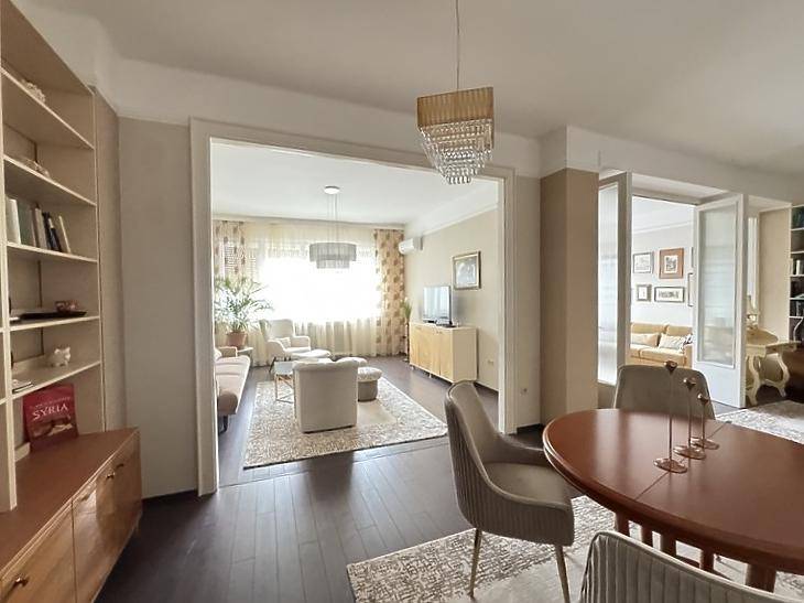 A belváros szívében, a Galamb utcában, 6. emeleti elhelyezkedéssel kínálunk bérbeadásra egy 115 m²-es, 3 szobás, teraszos lakást.A lakás világos, tágas terekkel, ízlésesen berendezett belsővel és lenyűgöző panorámás kilátással rendelkezik.Egy fürdőszoba található benne, melyhez külön WC tartozik, valamint az egyik hálószobában egy beépített zuhanykabin biztosít extra kényelmet.A kellemes hőmérsékletről a központi fűtés,és légkondicionáló gondoskodik.A ház lifttel felszerelt, a környék kiváló közlekedésű: néhány perc sétára találhatók a 4-6-os villamos, az M3-as metró, valamint több busz- és trolijárat megállói. A belváros főbb pontjai gyalogosan is könnyen elérhetők.Bérleti díj: 2 500 EUR / hóKözös költség: 141 EUR / hóA lakás azonnal költözhető, ideális választás pároknak, akik a belvárosi életstílust, a kényelmet és a stílusos életteret keresik.