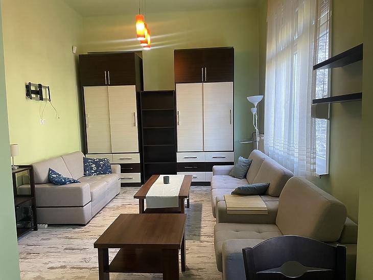 Felsőerdősor utcai másfél szobás lakás hosszú távra kiadó – max. 2 fő részéreBudapest belvárosában, a Felsőerdősor utcában, rendezett és liftes társasházban kiadó egy 47 m²-es, világos, másfél szobás lakás maximum 2 fő részére, hosszú távra. A lakás jó elosztású, csendes és ideális választás lehet pároknak vagy egyedülállóknak, akik a város szívében, mégis nyugodt környezetben keresnek otthont.A közös költség 15 000 Ft havonta, a rezsi fogyasztás alapján fizetendő. Telekom internet elérhető a lakásban.A bérlet feltétele két havi kaució és egy havi bérleti díj megfizetése, továbbá közjegyzői szerződés megkötése, melynek költségét a bérlő és a tulajdonos fele-fele arányban viselik. A társasházban Airbnb tevékenység nem engedélyezett, a lakóközösség rendezett és barátságos.A környék kiváló közlekedéssel rendelkezik: néhány perc sétával elérhető az Oktogon, az Andrássy út, a Nyugati pályaudvar, valamint a 4-6-os villamos és az M1 metró megállója is, így a város bármely pontja könnyen megközelíthető. A közelben számos bolt, étterem, kávézó, gyógyszertár és bevásárlási lehetőség található, ami kényelmes mindennapokat biztosít.A lakás azonnal költözhető a fenti feltételekkel.