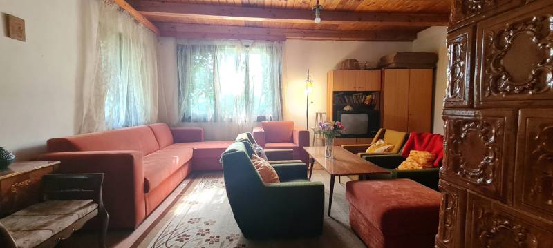 Hangulatos vidéki ház!Székesfehérvártól 11 km-re, Sárszentmihályon, buszmegállótól 700 m-re, 880 m2-es szép, jó kialakítású részben panorámás telekre, az 50-es években épült, a nyolcvanas években bővített egyszintes, jellegzetes, nappali kétszobás, 75 m2 hasznos lakóterű, 20m2-es terasszal, DK-i tájolású családi ház, pincével, eladó.Az utcáról az udvaron át megközelíthető házba, a fedett teraszról léphetünk, az előtérbe, melyből a nappali egy szoba és a fürdőszoba érhető el. A szobába belépve pedig a harmadik szobát érjük el.A ház az 50-es években épült vályogból, fa födémmel.1980-ban a házat bővítették, az akkori kornak megfelelően rendbe rakták, modernizálták.A ház egyik fele téglából a másik vályogból épült, fa nyílászárokkal, cserépfedéssel, a fűtését cserépkályha biztosítja, a meleg vizet villanybojler.Közművek közül a víz, villany, csatorna bevezetésre került, a gáz az utcában megtalálható.A szobákban laminált parketta, a többi helyiségben járólapokat helyeztek el.A ház állapotát tekintve felújítandó, de remek alap egy szép otthon kialakítására, amit a ház elrendezése lehetővé tesz. KörnyékDimbes-dombos, csendes, családi házas övezet, központhoz, főúthoz, autóbusz megállóhoz közel.MegközelíthetőségTömegközlekedéssel is könnyen megközelíthető a helyijáratos autóbusszal, a buszmegálló kb. 700 m-re van.Kiváló adottságú ház, szép helyen, hívjon, és nézzük meg, tetszeni fog!sarszentmihalyhaz, olcsonhaz, kerteshaz, 3szobasház, felujítandohaz,