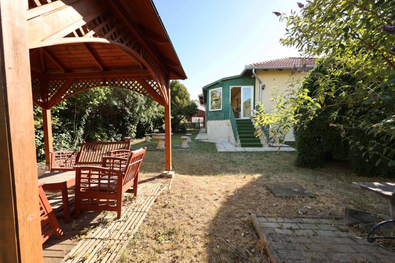Eladó!Érden, kertvárosi környezetben, csendes mellékutcában, mégis remek közlekedéssel, egy 2005-ben épült, önálló körbejárható, családi ház. Az ingatlan 716 nm-es telken helyezkedik el, tágas nappalival, 4 hálószobával, két fürdőszobával és egy télikerttel rendelkezik, kis ráfordítással akár két generációssá is alakítható. Fűtése gáz cirkó, valamint hűtő fűtő klímák. A ház modern, 10 cm vastag külső szigetelést kapott, továbbá a közelmúltban folyamatos felújításokon esett át. A kertben fedett, kétállásos kocsibeálló, valamint kerti sütögető található.Az épület egy szintes, viszont a ház szerkezete, a betonfödém és a területi szabályozás lehetővé teszi a tetőtéri lakrész kialakítását.Általános iskola, óvoda, bevásárlási lehetőség és buszmegállók sétatávolságra.Amennyiben felkeltette érdeklődését, keressen bizalommal!