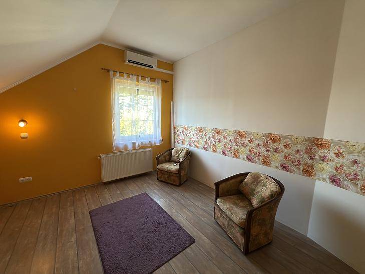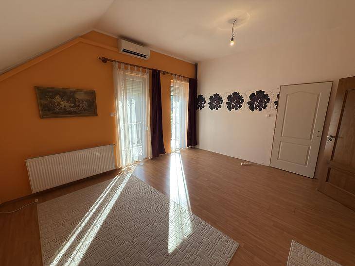 SZENTENDRÉN, PISMÁNY ALJÁBAN ELADÓ EGY ELSŐ EMELETI LAKÁS KERTKAPCSOLATTAL!Telek: 720 nmKÖRNYÉK:Szentendre kedvelt részén, Pismány aljában helyezkedik el, egy központi, de mégis csendes helyen. A kisbolt, illetve buszmegálló 4 perc sétára található, ahonnan könnyen megközelíthető Szentendre központja és Budapest is.A HÁZ JELLEMZŐI:Elsősorban készpénzes érdeklődők jelentkezését várjuk.-A lakás alapterülete 108 nm.-A lakáshoz tartozik saját kert, 150 nm.-Plusz egy 8nm-es erkély.-A ház 2002-ben épült, 38 cm-es POROTHERM téglából, 10 cm Dryvit szigetelést kapott.- A tetőben 20 cm-es kőzetgyapot szigetelés van, a tetőt kerámia cserép fedi.-A gépészet külön van a két lakásban.-A fűtésért egy kondenzációs gázkazán felel, ami 1 éven belül került kicserélésre.-Az közművek mérő órái külön vannak választva, de hitelesítve nincsenek.-Az elektromos hálózat vezetékei és a fűtés csövezetei rézből vannak.-A nyílászárók 2 rétegű műanyagból vannak.-A födém gerendás vasbetonból készült.-A lakás külön bejárattal rendelkezik. Tartozik hozzá egy előkert, ami 1 autónak kényelmes beállási lehetőséget nyújt.-A ház kiürített állapotban rövid időn belül birtokba vehető.FINANSZÍROZÁS:-Tehermentes, banki finanszírozással is megvásárolható, melyben irodánk ingyenes tanácsadással áll rendelkezésükre! VEVŐINK RÉSZÉRE A KÖZVETÍTÉS DÍJTALAN! A hirdetésben szereplő adatok tájékoztató jellegűek!