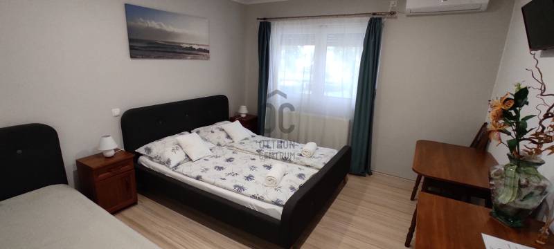 Balatonberényben kínálunk sokrétűen hasznosítható szálláshelyet, panziót eladásra.Az épület 2016-ban nyerte el végleges formáját, alapjaiban újult meg.A földszinten komplett étterem a szükséges kiszolgáló létesítményekkel, hűtőkamrával, valamint 2 szobás lakás és 2 apartman kapott helyet. Az emeleten 6 apartman (ebből 4 balatoni panorámás) található, mindegyik saját fürdőszobával. Az ingatlanban minden lakás, apartman külön klimatizált. (összesen 10 db)Az épület fűtése vegyestüzelésű kazánnal és gázkazánokkal (2 db) megoldott.A vételár a teljes berendezést magában foglalja.Az üzemeltetéshez szükséges összes engedély rendelkezésre áll.Az ingatlan tökéletes helyen van a hosszútávú befektetést, stabil bevételt kereső befektetőknek.Balatonberény a balatoni kerékpárút utolsó állomása Keszthely felé, a családosok kedvelt nyaralóhelye, köszönhetően a hosszú, lassan mélyülő strandjainak, csodás panorámájának.Minden szolgáltatás, szórakozási lehetőség elérhető, garantált a nyugodt kikapcsolódás. Rugalmasan megtekinthető előzetes egyeztetéssel.