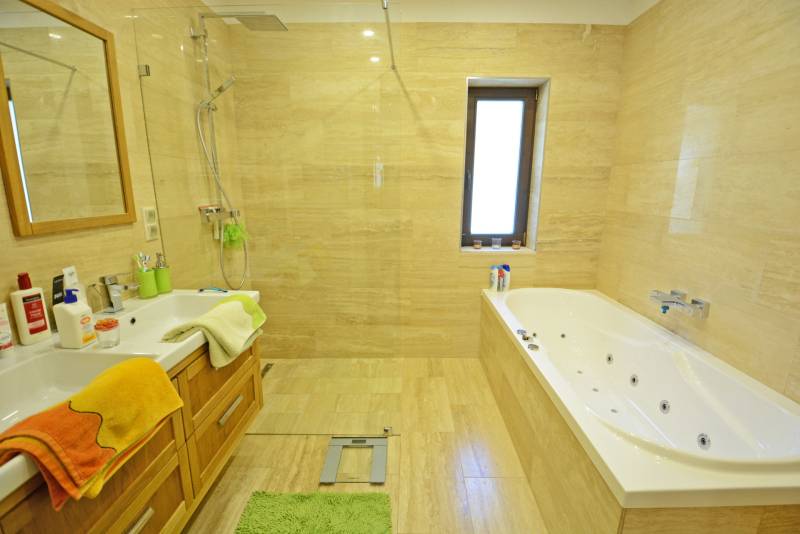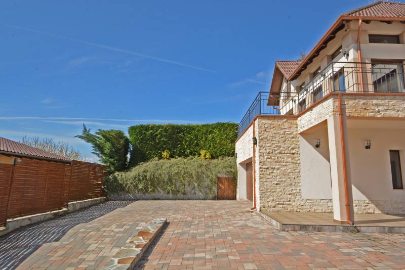 Alap adatok:- 1743 nm telekterület.- Két helyrajzi szám. ( 892+851 nm)- 2016-ban épült 3 szintes panorámás luxus családi ház, 4 lakószobával, panorámás nappalival,342 nm hasznos alapterülettel.- 60 nm-es panorámás terasz.- 4 autó részére garázs elektromos töltőfejekkel.- 6 autó részére gépkocsi beálló.- Fedett úszómedence, - 6 Kw szaldós napelem rendszer.- Hőszivattyús, elektromos, gáz és vegyes tüzelésű fűtés ki van alakítva és igény szerint kombinálható.- A világ legbarátságosabb full panorámás nyári konyhája tetővel, pultokkal raktárhelyiségekkel.- Elvehetetlen panoráma a Dunakanyarra- Egy 28 nm-es két szobás vendégház a másik helyrajzi számú telken.Verőce kis település a Duna bal partján 4160 lakossal. Budapest belvárosától a távolság 36 km légvonalban. 52 km közúton, mely gépkocsival kb. 1 óra. Vonattal Budapest Nyugati Pályaudvarról Verőce vasútállomásig Z70-es zónázó vonattal 31 perc.A telkek a település központjától 50 méterre, a vasútállomástól 200 méterre, a Duna partján lévő sétánytól 250 méterre, a kezdődő domboldalon helyezkednek el. Teraszos kialakítással különülnek el egymástól. Az alsó telek talajfeltöltésének köszönhetően mindkét ingatlan kertjéből örök panoráma nyílik a Dunakanyarra és a szemközti Pilis hegyvonulatára. Két telek, két helyrajzi szám, két utcai kapu, két külön közmű bekötés. Dologösszességben akarjuk értékesíteni a két telket.Az alsó telek 892 nm-es, a feltöltésnek köszönhető nagyrészt sík területekkel rendelkezik, rajta 3 szintes, szintenként 100 nm alapterületű családi házzal, melynek építését 2015 ben kezdték, a használatba vételi engedélyét 2019-ben adták ki. A földszinten a fűtött garázsfeljárón keresztül egy sík gépkocsibeálló mögött közel 60 nm -es, négy gépkocsi tárolására alkalmas garázs helyezkedik el, benne elektromos autók gyorstöltésére alkalmas fejegységgel. Mögötte 15 nm-es bortároló található. A földszinti folyosóról nyílik egy 10 nm-es helyiség, ahol a szauna előkészítés és egy zuhanyzó kap helyet. A szauna ezidáig nem került beépítésre, jelenleg raktárként funkcionál. A földszinten még egy különálló wc is ki lett a alakítva, ami az előszobából nyílik.Az első emeletre lépcsősor vezet, ahol egy 5.5 méteres belmagassággal rendelkező, hatalmas üvegablakokkal a Dunakanyarra panorámás nappali szoba található, ahonnan a szintén Dunai panorámás, közel 60 nm alapterületű teraszra juthatunk ki. A terasszal egy szintben van a gondozott pázsitos kert, ami egy támfallal különül el az alatta lévő telektől, a rajta lévő ház fölé emelve azt. A kertből szintén korlátlan a panoráma.A nappali szobából nyíló konyha és kamra a földszint és az első emeleti előkert közti rézsűs virágoskertre néző ablakokkal rendelkezik. Az első emeleti nappaliból nyílik az a háztartási helység, ahol a mosógépek és az épület gázcirkóval valamint hőszivattyúval kombinált fűtés és meleg víz rendszerének gépészete található.A nappaliból nyílik a szülői háló, melynek saját fürdőszobájában pezsgőfürdős kád, dupla mosdókagyló és wc kap helyet.Az első emeleti terasz és kert szintjén található az épület mellett jobb oldalt elterülő telekrész, ahol egy fedett kültéri konyha, és a hozzá tartozó 15 nm-es külső tároló kap helyet. Az oldalfalak nélküli konyhából elvehetetlen panoráma nyílik a Dunára és a környező hegyekre. A külső konyha hátsó oldalfalát a mellette lévő telek szinteltolását tartó támfal adja. A külső konyha tetőszerkezetén találhatóak az a napelem rendszer, mely a szaldós áram visszatáplálási rendszer gerincét alkotja. Az épület első emeletének szintjén a ház mögötti kertrészen van kialakítva az a csúsztatható boltíves polikarbonát tetővel ellátott kültéri medence, mely ellenáramoltatóval, fűtő berendezéssel és nagy teljesítményű vízforgató és homok alapú szűrőberendezéssel van ellátva. A medence melletti kültéri zuhanyzó alatt található a medence gépészeti egysége, míg a belépő vízrendszer központja a medence melletti tároló épületben helyezkedik el. A medence mellől indul az a széles lépcsősor, mely a fölötte lévő telekre vezet, mely ettől a szinttől egy támfallal különül el.A ház harmadik szintjén a nappalival egy légtérben, onnan a nappali ablakain keresztül a Dunakanyarra panorámás felső galéria kap helyet, ahonnan a harmadik szint három lakószobája érhető el. A ház jobb felében lévő két különálló szobához egy zuhanyzós fürdőszoba tartozik, míg a ház bal oldali részén lévő nagyobb hálószoba önálló zuhanyzós fürdőszobával rendelkezik.Az épület elektromos redőnyökkel szerelt. A fűtést és a meleg víz ellátást gáz cirkó és hőcserélős fűtőberendezés kombinált használatával lehet megoldani, mely lehetőséget biztosít arra, hogy az éves gázhasználatot a támogatott lakossági mennyiség alatt lehessen tartani. A szaldós napelem rendszernek köszönhetően elektromos gépjárművek töltése és a hőcserélős fűtési rendszer üzemeltetése mellett is a lakossági támogatott szint határértéke alatt tudják tartani a fogyasztást a jelenlegi tulajdonosok.A felső 851 nm-es, enyhén emelkedő telek. Rajta 28 nm alapterületű két hálószobás, zuhanyzós fürdőszobával, wc-vel és külső tárolóval ellátott vendégház áll, mely jelenleg irodaként funkcionál. Fűtése gáz konvektor és elektromos padlófűtés, de újonnan épült vegyes tüzelésű kémény már rendelkezésre áll, akár kályhának akár kandallónak. A telek ősfás, egyik részén gondozott, futtatott szőlőtőkékkel. Az alatta lévő telektől egy támfal választja el, melyben beép