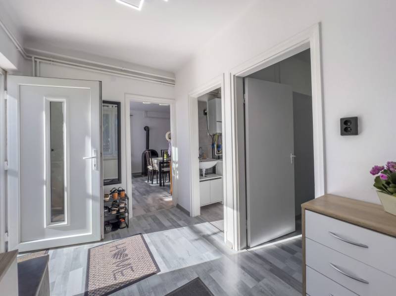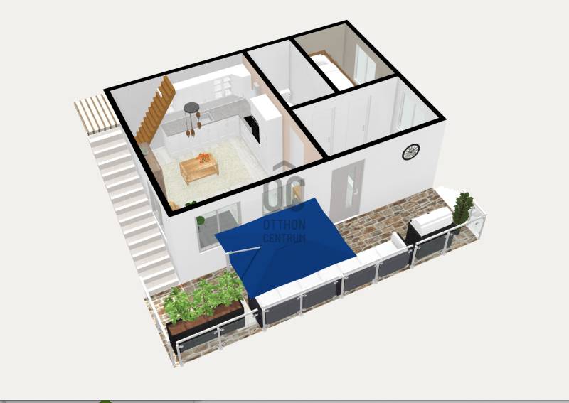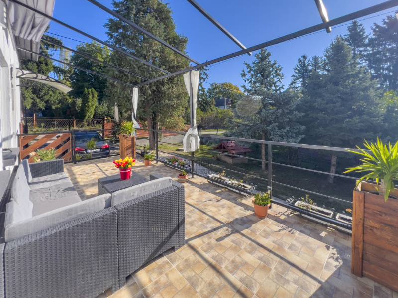 -erkélyAz emeleti lakrész a házon belülről és kívülről is lépcsőn megközelíthető.A villany bevezetve (három fázis, jöhet a napelem!) illetve van 2 fúrt kút és egy 10 méter mély ásott kút is. A kútvíz bevizsgált, ivóvíz tisztaságú.A szennyvíz elvezetése az emésztőbe történik.Optikai kábel kint a ház előtt (t-home), kukás autó heti szinten jár.