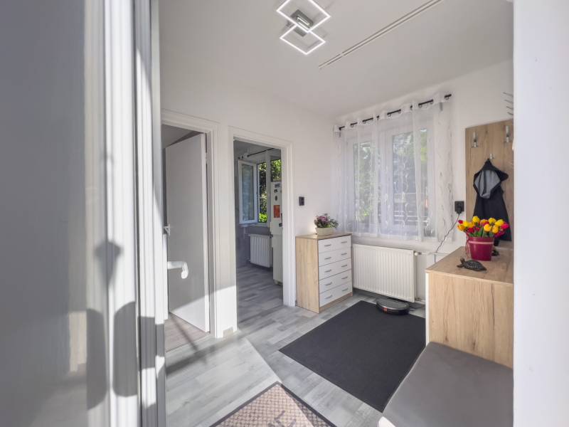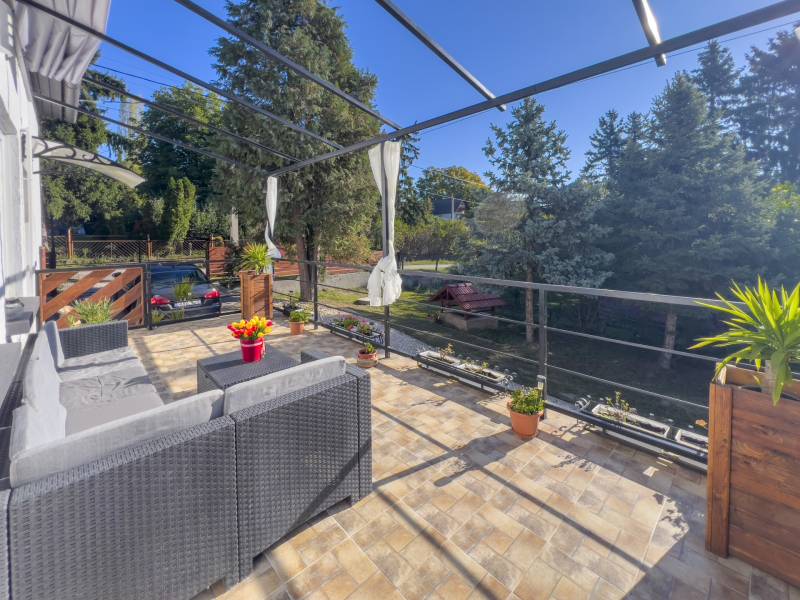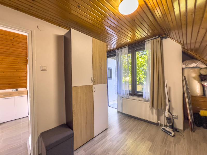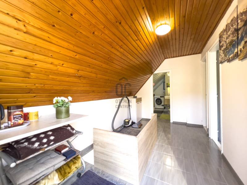 A telek végében ősfás erdő, kertben gyümölcsfák vannak.Ház alatt garázs ás tároló található..A házban található:Földszint: