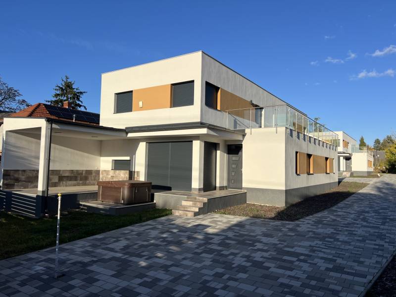 Balatonszárszó központjában, a Balaton-parttól mindössze pár perc sétára kínálunk megvételre egy új építésű, modern stílusban kialakított ikerház-lakást.Az ingatlan kétszintes elrendezésű, nettó 116 m² lakóterülettel, továbbá 15 m² terasszal és 22 m² erkéllyel rendelkezik. A praktikus, nappali + 4 hálószobás alaprajz és a saját, 250 m²-es telekrész kertkapcsolattal biztosítja, hogy az ingatlan egyaránt alkalmas legyen állandó otthonnak, nyaralónak vagy befektetési célnak.Helyiségek:Földszint:*előszoba, kamra és tároló*gépesített amerikai konyhás nappali, étkezővel*egy hálószoba*fürdőszoba WC-vel*fedett, kertkapcsolatos terasz jakuzzival (a vételárban benne)Emelet:*három, közel 12 m²-es hálószoba*közlekedő*kádas fürdőszoba WC-vel*tágas, 22 m²-es erkély, amely az egyik szobából közvetlenül elérhetőMűszaki tartalom és extrák:*Energiatakarékos hőszivattyús rendszer fűtésre és hűtésre *7 légkamrás műanyag nyílászárók, elektromos redőnnyel*elegáns beltéri ajtók, minőségi hideg- és melegburkolatok*ajándék, gépesített konyhabútor*beépített jakuzzi a fedett teraszon*teljes tereprendezés*az ingatlan azonnal költözhetőViacolorral burkolt két állásos autóbeálló kötelezően megvásárolandó 9 M Forint ellenértékben.ElhelyezkedésAz ingatlan Balatonszárszó központi részén fekszik, ahonnan néhány perc sétával elérhetők a mindennapi élethez szükséges üzletek, éttermek, kávézók és szolgáltatások.A Balaton-part alig 5 perc gyalog, az autós közlekedést pedig az M7-es autópálya közelsége teszi rendkívül kényelmessé. Finanszírozási lehetőségek*CSOK és egyéb kedvezményes hitelkonstrukciók elérhetők*Teljes körű ügyvédi háttér és ingyenes pénzügyi tanácsadás biztosított a vásárlás gördülékeny lebonyolításáhozKinek lehet ideális?*Olyan családoknak, akik modern, tágas, jól kihasználható terekkel rendelkező otthont keresnek*Nyaralni vágyóknak, akik egész évben élveznék a Balaton közelségét és a település kényelmét*Befektetőknek, akik számára fontos az értékállóság és a könnyű bérbeadhatóságNe hagyja ki ezt az egyedülálló lehetőséget – hívjon bizalommal, és tekintse meg személyesen ezt a különleges balatonszárszói otthont!