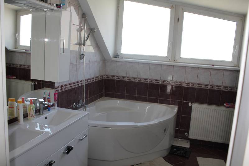 Budapest XV. kerületében, nyugodt, kertvárosi környezetben, eladó egy kétszintes, napfényes családi ház, 350 m²-es telken.Az ingatlan jellemzői:- Építés éve: 2005, 30-as Porotherm tégla, 5 cm hőszigeteléssel.- Földszint: amerikai konyhás nappali, étkező, előszoba, külön mellékhelyiség.- Emelet: három hálószoba, fürdőszoba káddal és zuhanyzóval, gardrób, mosókonyha.- Franciaerkély az egyik hálószobán.- Padlástér tárolásra.- Fedett terasz és gondozott kert, kemence és faház.- Fűtés: cirkó kazán, melegvíz: 150 literes víztároló.- Légkondicionáló a felső szinten.- Felújítások az elmúlt években: víztároló-, járólap-, laminált padlócsere, részleges fürdőszoba-felújítás.Környék és infrastruktúra:- Csendes, családbarát környezet.- Rövid sétára: bölcsőde, óvoda, iskola, gyógyszertár, állatorvosi rendelő.- Tömegközlekedés gyors eléréssel a belváros irányába.Ez az ingatlan ideális választás családoknak, akik nyugodt kertvárosi életet keresnek, de szeretnének jó infrastruktúrához és szolgáltatásokhoz közel maradni.- Hamarosan új profi képek! -