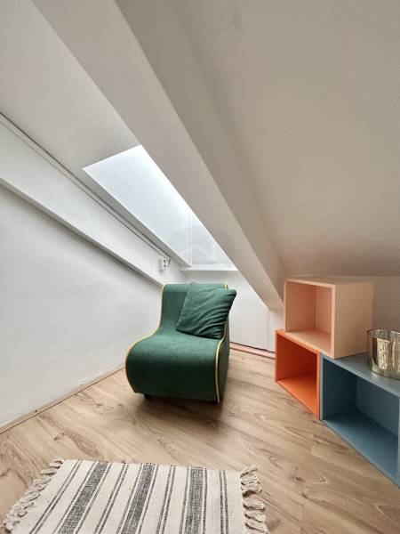 A 13. kerület kedvelt részén kínálunk eladásra egy világos, tetőtéri téglalakást. A 4 emeletes társasház legfelső szintjén található, bruttó 34, nettó 16 m²-es, 2,2 m belmagasságú ingatlan hivatalosan is lakásként szerepel a tulajdoni lapon. Minden helyiség külön nyílik, a kelet–nyugati fekvésnek köszönhetően egész nap napfényes és jól szellőztethető.Frissen felújított, azonnal költözhető!Rezsije rendkívül alacsony.Csendes, zöld környezet, mégis kiváló közlekedéssel és elérhető szolgáltatásokkal. Ideális első lakásnak vagy befektetésnek!