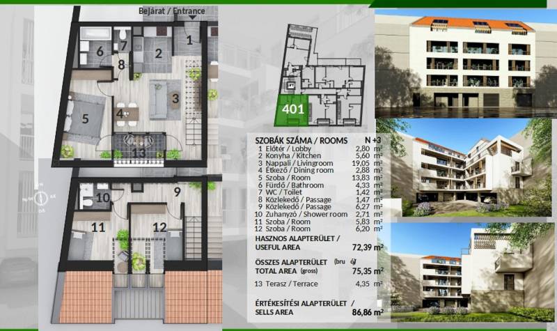 Az új lakásod keresése izgalmas kaland, és most egy olyan lehetőséget kínálunk, amely tökéletesen megfelel az első lakásvásárlók igényeinek. Budapest 04. kerületében, a felkapott Újpest központban található , új építésű lakóingatlan, amely minden elképzelésedet felülmúlja. Az ingatlan alapterülete 84nm, amely négy tágas szobát rejt ,a belső 2 szinten elosztva, így bőséges teret biztosít a mindennapi élethez. Az alsó, és felső szinten is található fürdőszoba egyedi tervezésű, és a világos amerikai konyhás nappali tökéletes helyszín a családi összejövetelekhez vagy baráti találkozókhoz.Az ingatlanhoz tartozik egy 5 nm-es erkély, ahol élvezheted a friss levegőt és a csendes környék nyugalmát. A lakás prémium kivitelezésű, és a legmodernebb technológiával készült, beleértve a motoros redőnyöket és az elektromos autó töltési lehetőséget, ami különösen vonzó a környezettudatos vásárlóknak. A házközponti fűtés egyedi mérésének köszönhetően pedig mindig a legjobb komfortérzetet élvezheted.A környék ellátottsága kiváló, hiszen a közelben található boltok, éttermek és szolgáltatások mind hozzájárulnak a kényelmes mindennapokhoz.Ne habozz, bizalommal állunk rendelkezésedre, hogy segítsünk megtalálni álmaid otthonát!
