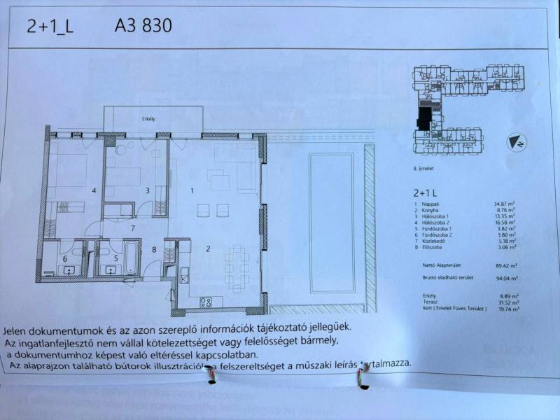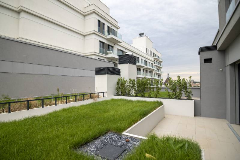 Eladó egy gyönyörű panorámás tetőteraszos és tetőkertes lakás a 9. kerület legmodernebb lakóparkjában!A CITY PEARL lakópark első ütemében átadott (2025. januárban) társasház 8. emeletén található VÁROSI PANORÁMÁS nagy teraszos, teraszkertes, erkélyes lakás.Lépjen be a főváros egyik legkülönlegesebb új építésű projektjébe, ahol a múlt öröksége és a modern életstílus tökéletes harmóniában találkozik!Ez a 89 m²-es Penthouse jellegű, természetes fényben úszó lakás, a hozzá tartozó 30 nm -es tetőterasszal és tetőkerttel valamint a 9 m²-es erkéllyel ideális választás saját otthonnak vagy értékálló befektetésnek, olyan vevők számára akik a városi panorámát keresik, illetve a prémium minőséget!A lakás már költözhető!ADOTTSÁGOK:- amerikai konyhás nappali (25 m2)- 2 dv hálószoba- 2 db fürdőszoba + WC- erkély- 30 nm Tetőterasz tetőkerttel mely ideális a barátokkal való grill partykhoz is.A lakás 8. emeleten található, ablakai és az erkélyei városi panorámával rendelkeznek utcai nézetűek. Délnyugati fekésévének köszönhetően a lakás nagyon világos.Fűtése távfűtés, hőszívattyűs fűtés rásegítésével. A lakáshoz egyedi mérők tartoznak mind a fűtés, áram és melegvíz fogyasztás nyomonkövetéséhez.A CITY PEARL lakóparkot jellemzi az átgondolt, magas minőségű kivitelezés!MŰSZAKI LEÍRÁSJelen lakásunk IX. ker. Soroksári út – Vágóhíd út – Vaskapu utca – Máriássy utca általhatárolt telekingatlanon található. Az épület egy kétszintes mélygarázsból és a földszinten felül/ kívül 12 emeletből áll. A parkolóka Vágóhíd utcai bejárat felől, egy védett, magántulajdonban levő területről közelíthetők meg. Azépületen kívüli közterületek burkolattal / kövezéssel csatlakoznak az épülethez. Az épületegység részét képezi egy belső kert szép parkosítással. A lakásokhoz vezető bejáratok aVágóhíd és a Vaskapu utcában helyezkednek el. Van egy gyalogos bejárat a Vágóhíd utcábantalálható Arkádon keresztül is, amely lehetővé teszi az embereknek, hogy elérjék a zöldterületet és a telek központjában található Piazzát.FŰTÉSI RENDSZERAz épület számára távhő renszer biztosítja a fűtést és melegvízet,egyedi mérőkkel.A hőfogyasztás mérése a kiépített elektromechanikus vagy ultrahangos áramlásmérőkkel(kaloriméterek) történik, amit a lakásokon belül a fő hőforrást a radiátorok és fürdőszobaitörülköző szárító radiátor biztosítják.LÉGKONDICIONÁLÁSNem lesznek közösségi területeken szabadtéri légkondicionáló egységek, minden apartman aszabadtéri egységeket a saját erkélyére helyezi. Az apartmanban 2 beltéri egység és 1szabadtéri egység lesz előkészítve a nappali és a fő hálószoba számára.Digitális kaputelefon rendszer:• Minden lakásban színes képernyőjű digitális kaputelefon kerül beszerelésre. A rendszersegítségével nyitható az épület bejárati ajtaja, továbbá lehetőséget biztosít arra, hogy alakásban és az ajtónál álló személy beszéljen egymással.• A csengő panelje az épületek bejárata közelében lesz. Ennek a panelnek a segítségével híváskezdeményezhető az épület bejáratánál. Ezen kívül a lakástulajdonosok az épület bejáratiajtaját egy jelszóval tudják kinyitni, így kulcs használata nélkül tudnak az épületbe bejutni.Hálószobák:Padlóburkolat: Jó minőségű laminált padló lesz telepítve egy vékony szigetelőréteggel ellátott esztrich rétegen.Falburkolat: A falak gipsz anyagú vakolatot, glettelést és vízbázisú festéstkapnak.Szegély: A padlóburkolathoz igazodó szegélyek kerülnek alkalmazásra.Mennyezeti burkolat: A mennyezet gipsz anyagú glettelést és vízbázisú festést kapNappali:Padlóburkolat: Jó minőségű laminált padló lesz telepítve egy vékony szigetelőréteggel ellátott esztrichen.Falburkolat: A falak gipsz anyagú vakolatot, glettelést és vízbázisú festéstkapnak.Szegély: A padlóburkolathoz igazodó szegély kerülnek alkalmazásra.Mennyezeti burkolat: A mennyezet gipsz anyagú glettelést és vízbázisú festést kapBIZTONSÁG:A bejárati ajtók több ponton záródó típusúak és a MABISZ (Magyar Biztosítók Szövetsége)előírásainak megfelelnek. A garázsajtó alumínium és fém-szerkezetű és távirányítássalműködik. Az épületen kívül és a közös helyiségekben a biztonsági szobával összekötött CCTVfelügyeleti rendszer lesz telepítve.PARKOLÁS• A parkolóhelyek külön vásárolhatók A parkolóhelyek méretei változóak, a következő listaszerint• Nagy parkolóhely: (2.5m vagy szélesebb) x (5.0 -5.5 m)