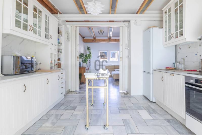 A Duna budai partján, a XI. kerület nívós részén, Gellért hegyen a Kemenes utcában keresi új tulajdonosát, egy különleges, 4. emeleti, két külön lakrészre osztott, műszakilag és esztétikailag is jó állapotú, panorámás ingatlan! Ha jó adottságokkal rendelkező, értékálló ingatlant keres kiváló környéken, ezt a lakást feltétlenül nézze meg!Fontos infók a LAKÁSRÓL:- A lenyűgöző Gellért hőforrás és a nemzeti park mellett elhelyezkedő, romantikus, panorámás ingatlan.- 4. emeleti, belső két szintes, körbe napozott, mesés panorámával a Citadellára és Gellért-hegyre.- Tetőtérben helyezkedik el, teljes alapterülete 267 m2, tulajdoni lapon 158 m2-es lakás két lakrészre osztva.- A két szeparált lakrész közös előszobából nyílik és két nagy, belső két szintes lakásként funkcionál.- 1-es lakás elosztása: konyha, nappali+étkező, fürdőszoba mellékhelyiséggel, emeleten két hálószoba, fürdőszoba és mellékhelyiség.- 2-es lakás elosztása: előszoba, konyha+étkező, tároló, fürdőszoba mellékhelyiséggel, közlekedő, nappali, hálószoba+tároló, emeleten két szoba, fürdőszoba és mellékhelyiség.- A lakások fűtését két külön gáz cirkó kazán, a hő leadást radiátorok biztosítják.- Minden közmű fogyasztás alapján fizetendő, a két lakás külön almérőkkel rendelkezik.- Közös költség: 37.000 Ft, mely tartalmazza a felújítási alapot is.- A belmagasság 280 cm, minden helyisége tágas terekkel rendelkezik.- Nyílászárói műanyag és fa, ablakai árnyékolóval felszereltek.- Az ingatlan rendelkezik energetikai tanúsítvánnyal és villamosság biztonsági felülvizsgálattal is.- Az ingatlan hosszú távra könnyen bérbe adható, és jó megtérülést kínál.Amit a HÁZRÓL érdemes tudni:- 1905-ban épült, 4 emeletes, 45 lakásos, szecessziós stílusban épült tégla társasház.- Külső és belső homlokzata egyaránt jó állapotú, lifttel felszerelt.- Lépcsőháza tiszta és gondozott, lakóközössége rendszerető.KÖRNYÉK és közlekedés:- XI. kerület, Gellérthegy, Kemenes utca.- Karnyújtásnyira a Szent Gellért Gyógyfürdő, Műegyetem, Gellért-hegy, Citadella, Budai Rakpart.- A terület infrastruktúrája és tömegközlekedése kiváló.- Pár perc sétatávolságban elérhető számos tömegközlekedési eszköz.- Élelmiszer boltok, az Allee Bevásárló Központ, a Fehérvári úti Vásárcsarnok sétatávolságban.- A belváros gyorsan és kényelmesen megközelíthető autóval és tömegközlekedéssel egyaránt.AZ INGATLAN MEGTEKINTHETŐ:- 3D Websétán keresztül,- személyesen,- online személyes bejelentkezéssel.FINANSZÍROZÁSBAN ONLINE ÜGYINTÉZÉSSEL IS SEGÍTÜNK:- Bank-független hitelcenterünk díjmentesen versenyezteti minden bank és hitelintézet ajánlatát.- Nincs más dolga, mint beszélgetni munkatársunkkal, majd a megversenyeztetett ajánlatokból kiválasztani a hosszútávon is a legmegfelelőbb konstrukciót.- Szakértőink 20 éves szakmai tapasztalattal és egyedi igényekre szabott, fogyasztóbarát lakáshitelekkel, babaváró hitellel, teljes körű CSOK PLUSZ ügyintézéssel várják.Az ingatlan előre egyeztetett időpontban megtekinthető, kérdés esetén hívjon bizalommal!