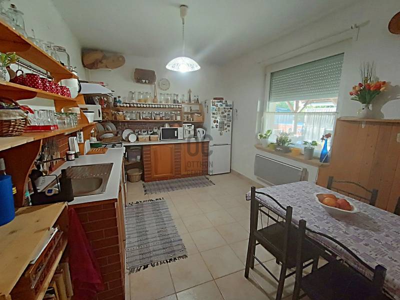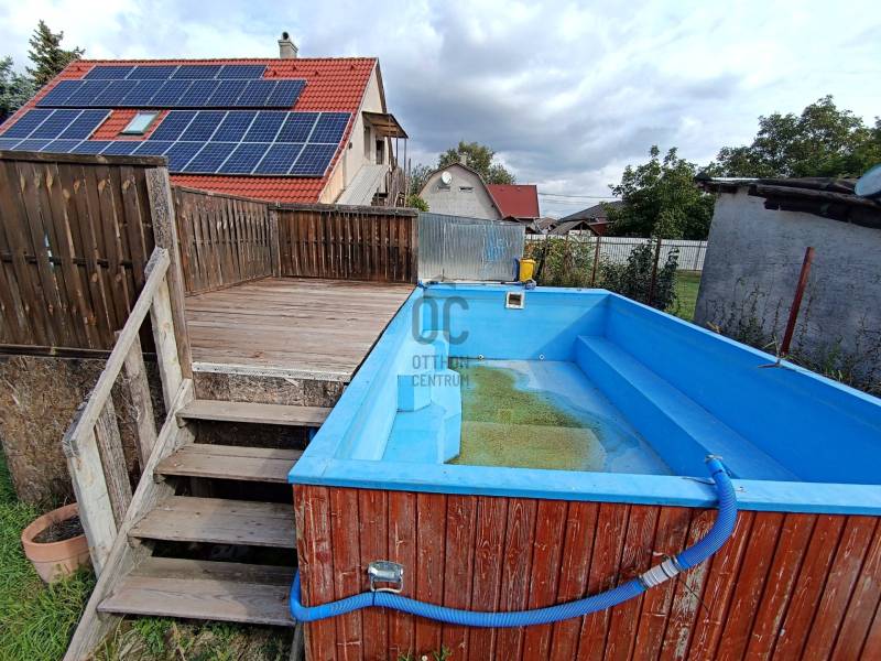 Tárnok csendes részén, Érdhez közel eladó egy 125 m²-es, belső két szintes családi ház, amely akár két generáció együttélésére is ideális.!A++ energtikai besorolás! Rezsi 10.000 Ft alatt!Főbb jellemzők-Építés éve: 1992-Szerkezet: szilikát, cserép fedés, 10 cm dryvit szigetelés-Alapterület: 125 m²-Két szint külön bejárattal (átjárás visszaalakítható)-Extra: kb. 20 m²-es külön lakrész a korábbi garázsból kialakítvaHelyiségek elosztásaFöldszint:-nappali-étkező-konyha-hálószoba-gardróbszoba-fürdőszoba-külön WCEmelet:-2 szoba-konyha-fürdőszoba-WCHarmadik lakrész (20 m² - garázsból lett kialakítva):-szoba-konyha-fürdőszobaRezsi és energia-8,5 kW napelem rendszer – biztosítja a fűtést és az áramot-Áramellátás: 1x32A, 2x16A-Elektromos kazánnal fűtött-Csak víz, csatornadíj és gázcirkó (melegvízre) fizetendő-Téli hónapokban is 10.000 Ft alatt a rezsiTelek és extrák-Lemezgarázs-Kétállásos autóbeálló-Nagy méretű medence a kertben – a vételár részeEz a ház azoknak tökéletes választás, akik minimális rezsivel keresnek kényelmes, akár kétgenerációs otthont csendes, mégis jól megközelíthető környéken.Ez az ingatlan a \"Felező csomag\" megbízási portfólióhoz tartozik. Részletek az Otthon Centrum weboldalán.
