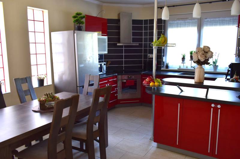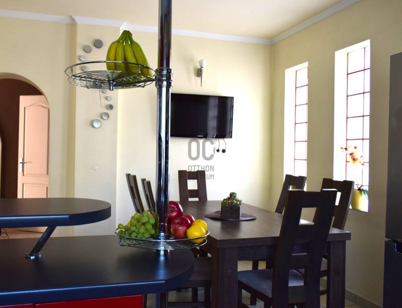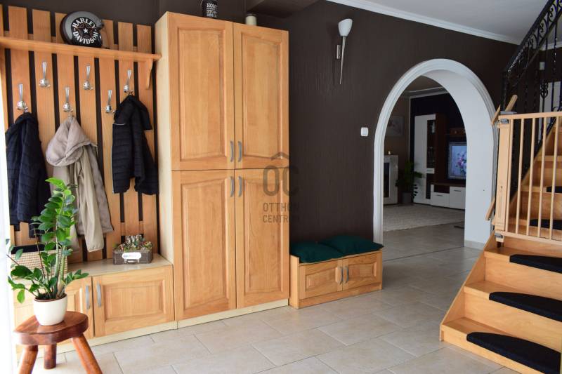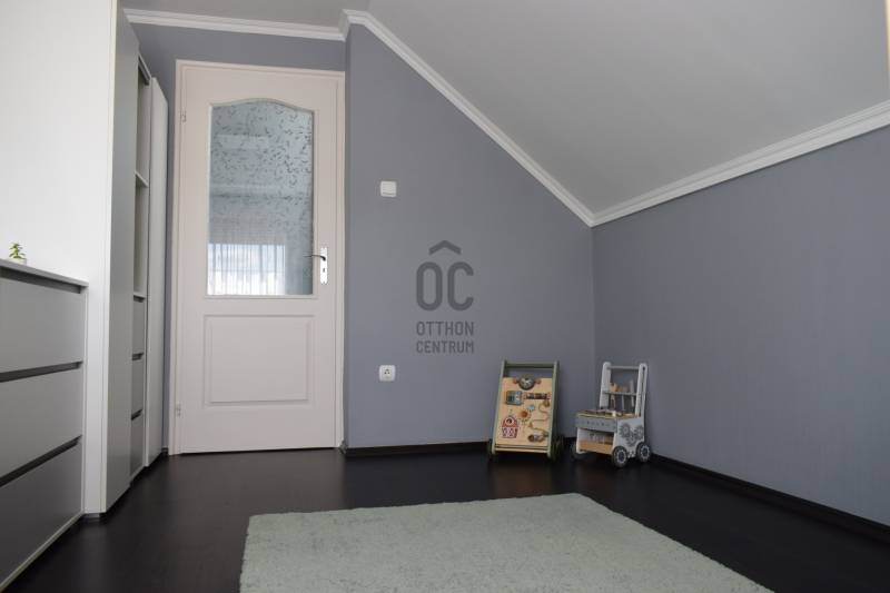 Makó egyik legkeresettebb kertvárosi övezetében eladó egy igényesen felújított, kétszintes családi ház, 720 m²-es, önálló telken.Az ingatlan 1990-ben épült téglából, 2005-ben teljes körű felújításon, 2023-ban pedig funkcionális bővítésen esett át. Jól átgondolt elosztás, tágas közösségi terek, kitűnően benapozott helyiségek jellemzik.A KÖRNYÉK:Gerizdes Makó egyik legkedveltebb kertvárosi jellegű városrésze. Zöldfelületek,gyönyörű platánfák, rendezett infrastruktúra, nyugodt, biztonságos környezet jellemzi.A belváros autóval 5 perc alatt megközelíthető. Iskolák, óvodák, üzletek rövid időn belül elérhetőek. AZ INGATLAN :>> 157 m2 es nettó alapterület>> tágas, nagy üvegfelülettel rendelkező nappali + 4 szoba>> a szülői háló gardróbbal és erkély kapcsolattal>> 2 fürdőszoba>> különálló konyha étkezővel>> 3 éves kondenzációs kombi gázkazán>> padlófűtés az alsó szinen, radiátorok a felső szinten>> hűtő-fűtő duál klíma>> műanyag hőszigetelt nyílászárók, ablkokon redőny és szúnyogháló>> külső hőszigetelés>> ipari áramExtrák:>> új riasztórendszer>> napelem-előkészítés>> mobil kandalló a nappaliban>> két garázs (egy fűtött + egy különálló)>> térkövezett bejáró 3 autó számra>>kerékpár- és szerszámtároló kisház> fúrt kút>> kertben kialakított játszótérA kiváló műszaki állapot, a praktikus belső elrendezés, valamint a kertvárosi környezet együttese ritka lehetőség azok számára, akik ÉRTÉKÁLLÓ, MINŐSÉGI CSALÁDI HÁZat keresnek.Az ingatlan rugalmasan megtekinthető, hívjon bizalommal!