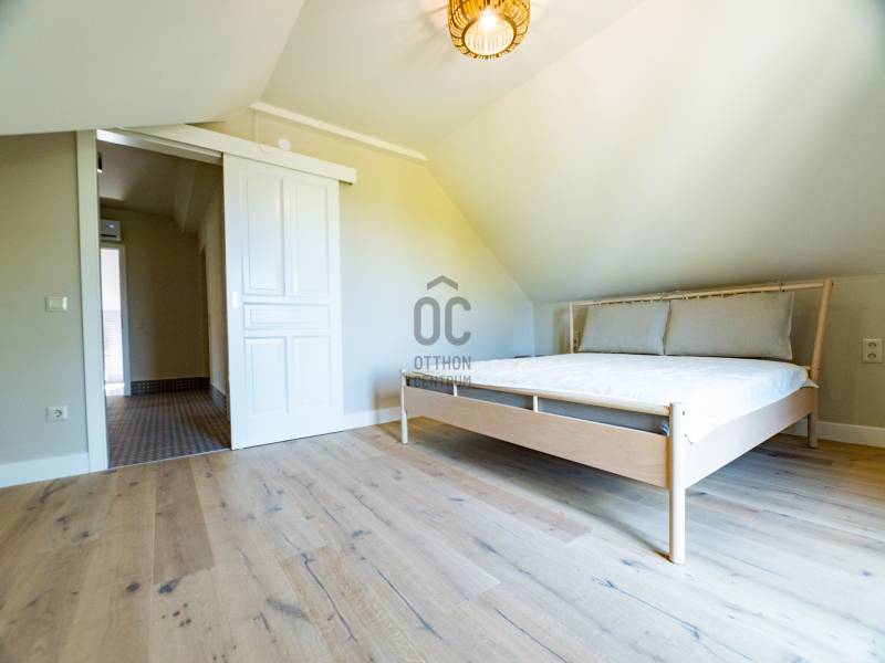 Eladó Fonyód egyik legpatinásabb részén, a történelmi Szaplonczai sétány védett ölelésében a különleges hangulatú Chernel villa. Az ingatlan páratlan kilátással rendelkezik a Balatonra és az északi part ikonikus látképére.A villa teraszáról és a házból örök panoráma nyílik a Balaton-felvidék tanúhegyeire, így Badacsony, Gulács és Ábrahám-hegy sziluettje minden nap elvarázsolja a szemlélőt. A közelben található a családbarát Bélatelepi strand, így a nyári balatoni élmények is karnyújtásnyira vannak.Az épület nemcsak fekvésében, hanem megjelenésében is igazi ritkaság: az épület hagyományait megőrizve ötvözték a modern építészeti stílust. A villa presztízst és egyediséget képvisel, tökéletes választás azok számára, akik időtálló értékbe fektetnének.Ez az ingatlan nemcsak otthon, hanem életérzés – a klasszikus balatoni nyarak öröksége és a nyugalom szigete a déli part legszebb részén.Ez a két szintes, különleges hangulatú ház tökéletes választás mindazoknak, akik értékelik a minőséget, az egyedi megoldásokat és a kényelmet. Az ingatlan nappali + 4 szobás kialakítású, három modern fürdőszobával, tágas terasszal és praktikus pincével rendelkezik. A ház minden szeglete átgondolt és korszerű megoldásokat kínál.A nyílászárók egyedi gyártásúak, az ablakokon szellőztető funkció és szúnyogháló is található, a hő- és hangszigetelésről pedig dupla szendvics üvegezés gondoskodik. Az ingatlan teljes mértékben téliesített, így egész évben komfortosan használható.A belső terek kialakításánál a természetes anyagok és a prémium burkolatok dominálnak: a hajópadló lépésálló szigeteléssel készült, megfelelve a mai építési szabványoknak, a nappaliban és az étkezőben pedig stílusos spanyol cementlapok teszik különlegessé az enteriőrt.A tökéletes klímakomfortot az emeleten három különálló klímaberendezés biztosítja, míg a földszinten a nappali és a hálószoba is külön hűtő-fűtő klímával felszerelt.Ez a különleges adottságokkal rendelkező ingatlan számos kulcsfontosságú eleme már elkészült, a végső befejezés azonban a leendő tulajdonosra vár, így maximálisan személyre szabható.A házban Leier típusú kémény került kiépítésre, és a kandalló kiállása is elő van készítve – így a meghitt téli esték hangulata már csak egy döntésre van. Medence és annak teljes gépészetének kialakítása adott.A pincében már csak a burkolatok hiányoznak, a falak és az alapinfrastruktúra készen áll, így minimális munkával egy teljes értékű, hasznos tér alakítható ki.A kert kialakítása még nyitott amely remek alapot biztosít díszkert,pihenőkert vagy akár konyhakert létrehozásához.Az ingatlanhoz tartozik egy különálló 50 négyzetméteres, közműves melléképület is, amelyhez a felújítási tervek rendelkezésre állnak – akár vendégházként hasznosítható és egy külön utcáról is megközelíthető.Ez az ingatlan ideális választás akár nyaralónak, akár állandó otthonnak – a modern technikai megoldásoknak és a gondos kivitelezésnek köszönhetően hosszú távon is értékálló befektetés.Ne hagyja ki ezt a különleges lehetőséget, hogy egy balatoni ékkő birtokosa legyen!