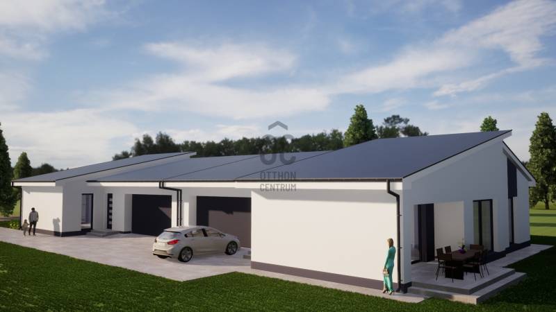 Eladó Nagymacson, a BMW-től 1 percre, új építésű, 157 m2-es, nappali-amerikai konyha-étkező + 4 külön nyíló szobás, dupla garázsos ikerház, 660 m2 telekkel, az alábbiak szerint:> földszintes kivitelezésben, nagy és világos terek> a nappali-konyha-étkező rész önmagában 44 m2, amihez kapcsolódik a félig fedett 14 m2-es terasz> a hőszivattyús fűtés elektromos igényét teljes egészében fedezi az 5 kW-os napelem rendszer, ezért az épület fenntarthatósága kiváló> 2 fürdőszoba és 3 WC biztosítja a reggeli készülődés zökkenőmentességét> mind a 4 hálószoba külön nyílik és jól szeparált a nappali résztől, ezért a nyugodt pihenés garantált> a szekcionált garázskapu is hőszigetelt, elektromos távirányítóval szerelt> térkőburkolat, tereprendezés, füvesítés> választható burkolatok színben és anyagban is (járólap-vinyl-laminált parketta)> igény szerint a teraszhoz előtető rendelhető> vételár tartalmazza az oldalsó- , utcafronti- , hátsó kerítés kialakításának a költségét, valamint az utcafronti elektromos, távírányítós nagykapu árát is> a burkolatok mellett a beltéri ajtók is választhatókRészletes műszaki tartalomért, további információkért, megtekintési időpontért hívja kollégánkat a hét minden napján!