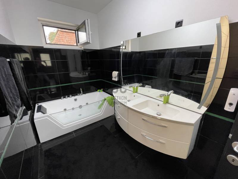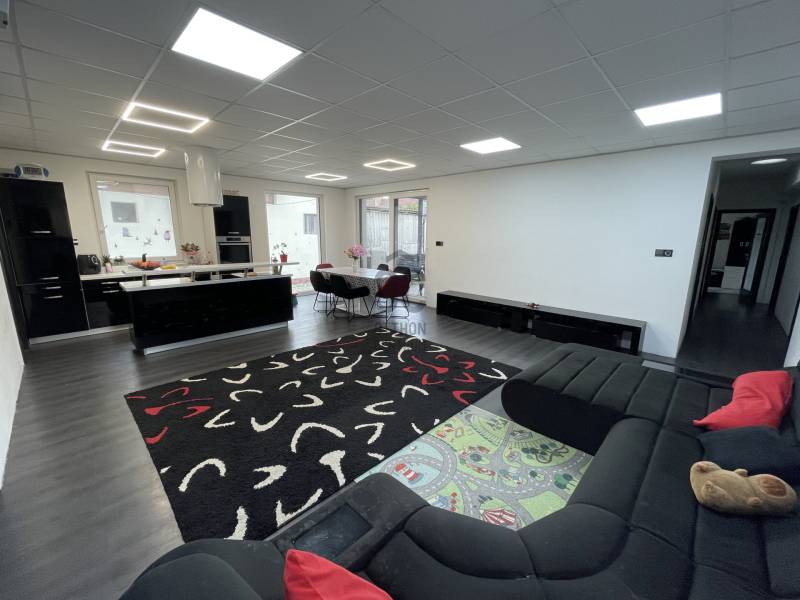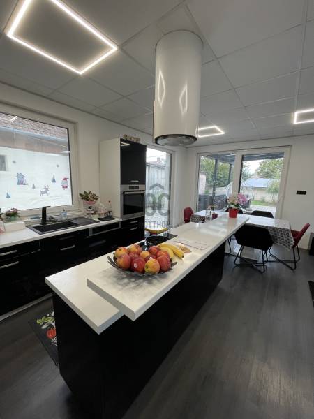 Képzeld el, hogy egy olyan otthonra találsz, ami nemcsak a családod igényeit szolgálja ki, hanem a mindennapjaidat is szebbé és kényelmesebbé teszi. Hajdúböszörmény szívében, a Belvárosban vár rád ez a világos, 2019-ben minőségi anyagokkal megépített modern családi ház, amely tökéletes választás családosok számára. Az ingatlan 143 négyzetméteren terül el, és egy 559 négyzetméteres telken fekszik, így bőséges helyet biztosít a gyermekeknek és a felnőtteknek egyaránt. A házban étkező-konyha-nappali egy légtérben+ 5 szoba található, amelyek ideálisak lehetnek hálószobának, dolgozószobának vagy akár vendégszobának is. A két fürdőszoba garantálja, hogy sosem kell várakoznod a reggeli rohanás közben. A 20 négyzetméteres terasz a családi összejövetelek, baráti grillezések vagy csak a pihenés tökéletes helyszíne lehet. A dupla garázsban és a részben térkövezett udvaron több autó számára elegendő hely biztosított. Az ingatlan hőszigetelt alumínium redőnyökkel, egyedi fa beltéri ajtókkal rendelkezik, a kellemes hőmérsékletet az év minden szakaszában Ariston kondenzációs gázkazán padlófűtéssel és Gree hűtő-fűtő klíma biztosítja. A kedvező paramétereknek és az 5 kW-os napelem rendszernek köszönhetően alacsony fenntartási költséggel bír.A környék központi elhelyezkedése lehetővé teszi a könnyű közlekedést. Emellett a környék biztonságos és csendes, ideális választás családok számára, akik értékelik a nyugalmat és a városi élet előnyeit. További kérdéssel, megtekintéssel várjuk szíves megkeresését!Irodánkban teljeskörű hitelügyintézéssel állunk ügyfeleink rendelkezésére.Ez az ingatlan a \"Felező csomag” megbízási portfólióhoz tartozik. Részletek az Otthon Centrum weboldalán.Ez az ingatlan a \"Felező csomag\" megbízási portfólióhoz tartozik. Részletek az Otthon Centrum weboldalán.