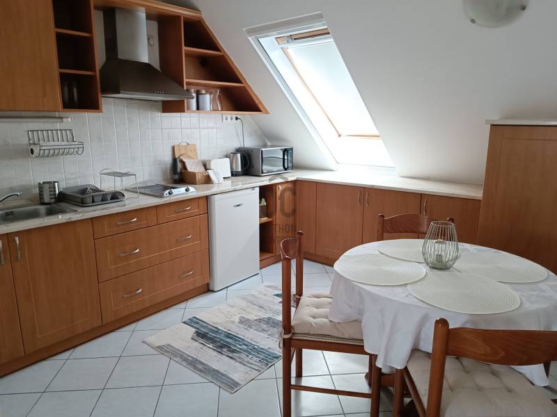 Az ingatlan Debrecen belvárosában, egy csendes, egyirányú utcában található. A társasház csendes, csupán hatlakásos, a ház szigetelt, karbantartott, saját takarítóval és kertrendezéssel. A társasházhoz egy közös, igényesen rendben tartott belső kert és fedett bicikli beálló is tartozik. Alapterülete bruttó 34 nm, ebbe beletartozik egy szoba, egy konyha és egy fürdőszoba. Minden beépített bútor és a beépített berendezések is a vételár részét képezik. Saját víz, gáz és villanyórával van ellátva. A fűtést minden helyiségben radiátor biztosítja, a hely klimatizált. A Velux tetőtéri ablakokat új Velux hő és fényzáró rolóval láttuk el. A világításról energiatakarékos spot lámpák gondoskodnak. Az ingatan elhelyezkedése kiváló. Gyalogosan, biciklivel 5-10 perc a Piac utca, Nagytemplom, a villamos és buszmegállók is a közelben. Az ingatlan tehermentes. Egy embernek, egy párnak optimális belvárosi kis otthon, de tökéletes befektetési lehetőség, gyakorlatilag azonnal kiadható bármilyen változtatás nélkül. Az ingatlan nem hitelezhető, további részletekért érdeklődjön bármikor.