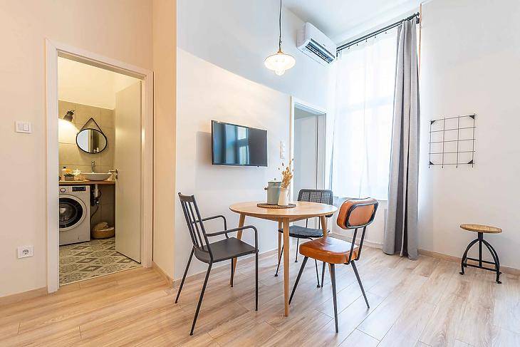 Eladásra kínálunk Budapest VI. kerületének egyik legkedveltebb részén, a Dessewffy utcában egy teljes körűen felújított, 50 négyzetméteres, 2. emeleti lakást. Az ingatlan kiváló elosztású, két különnyíló szobával és egy tágas, világos nappalival rendelkezik, így ideális választás lehet mind saját otthonnak, mind befektetési célra. A lakás minden helyisége igényesen lett kialakítva, modern burkolatokkal és korszerű műszaki megoldásokkal, így az új tulajdonos azonnal költözhet, különösebb ráfordítás nélkül. Az ingatlan használati megosztással rendelkezik, ennek köszönhetően a tulajdonviszonyok rendezettek és átláthatók. A társasház kiváló műszaki és esztétikai állapotban van, homlokzata felújított, a lépcsőház tiszta, rendezett, a lakóközösség csendes és kulturált. A lakás elhelyezkedése kivételes: a Dessewffy utca csendes, mégis központi helyen található, néhány perc sétára az Oktogontól, az Andrássy úttól, a Nyugati pályaudvartól és a Liszt Ferenc tértől Ez a lakás ideális választás lehet mindazok számára, akik szeretnének a város szívében, mégis nyugodt és igényes környezetben élni, vagy akik befektetési lehetőséget keresnek egy jól kiadható, értékálló ingatlan formájában. Az adatok tájékoztató jelegüek.
