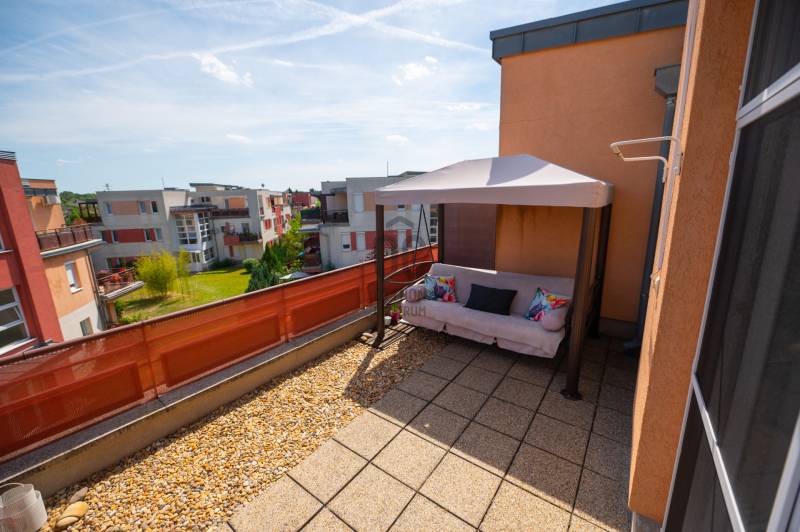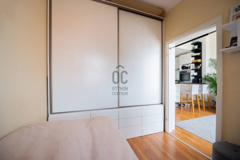 Az 515. utcában, csendes és zöld környezetben kínálunk megvételre egy 34 m²-es lakást, amelyhez tartozik egy hatalmas, 18 m²-es terasz, így összesen bruttó 43 m²-es lakóélményt nyújt. A lakás a 2. emeleten, a legfelső szinten található, így Penthouse jellegű, terasza a belső, parkosított kertre néz, biztosítva a nyugalmat és a kellemes kilátást.A lakás egyik különlegessége a 370 cm-es belmagasságú nappali, amely páratlan térérzetet ad. A teljes üvegfelületű nappali a terasz felől rendkívül világos, a konyha pedig dobogóra épült, amely alatt egy nagy kihúzható ágy kaphat helyet – praktikus és modern megoldás.A fürdőszoba szintén nagyobb az átlagosnál, kényelmes sarokkáddal felszerelve. A lakás klimatizált, redőnyökkel ellátott, teljes bútorzattal és gépesítve kerül eladásra, így azonnal költözhető.Kinek ajánljuk?- Egyedülállóknak vagy fiatal pároknak, akik alacsony rezsijű, modern és világos otthont keresnek.- Azoknak, akik szeretik a különleges térérzetet, a nagy teraszt és a nyugodt, zöld környezetet.- Befektetőknek, hiszen a reális bérleti díj 250.000,-Ft/hóFőbb előnyök:- 34 m² lakótér + 18 m² terasz- Legfelső emeleti, Penthouse jellegű lakás- Csendes, belső kertre néző terasz- Egyedülálló 370 cm belmagasság- Nagy fürdőszoba sarokkáddal- Alacsony rezsi (maximum 20.000 Ft)- Teljes bútorzattal és gépesítve eladóA környéken minden elérhető pár perc sétával: Tesco, gyógyszertár, éttermek (pl. KFC), valamint egyéb bevásárlási és szolgáltatási lehetőségek.Álmai otthona vagy biztos befektetése várja Önt ebben a különleges, Penthouse jellegű lakásban!TOVÁBBI RÉSZLETEKÉRT KERESSEN A HÉT BÁRMELYIK NAPJÁN