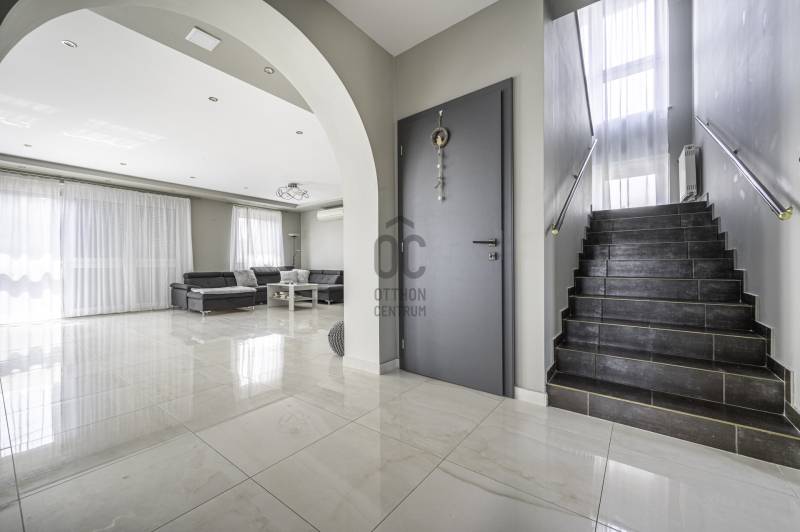 PESTLŐRINC LEGSZEBB RÉSZÉN A GLÓRIETT TELEPEN,KÖZEL A HALMI ERDŐHŐZ, ELADÓ EGY LUXUS SZINVONALÚ CSALÁDI HÁZ,REÁLIS ÁRON!!XVIII. Glóriett telepen eladó egy 6 szobás, 2 fürdőszobás,4 wc-és, luxus színvonalú sok-sok extrával rendelkező kétszintes családi ház+ beépített alsószinttel. Alapterülete 120 m2 három szinten, a telek 450 m2.Az ingatlant tágas és világos terek jellemzik, az alsó szinten levő nappali bárpulttal, és a földszinten levő nappali, egyaránt 60-60 m2, és déli fekvésűek. Minden szinten, beépített hatalmas tükrös szekrények. Fedett gépkocsi tároló, 3 autó részére. A közeli Halmi erdőbe, mely 5 perc kényelmes sétára található, kiváló sportolásra és kikapcsolódásra, ad lehetőséget.-alsó szint: előtér, nappali, kondi terem, kazánház, mosókonyha+ zuhanyzó+ wc, jakuzzi,-középső szint: előtér, nappali, nagy kamra, wc, konyha, étkező,( két klíma+ elektromos redőny)-felső szint: előtér, fürdőszoba wc, + wc külön,4 hálószoba, gardrób,(központi klíma+ manuális redőny)-műszaki tartalom:fűtés: gázcirkó+ kandalló, 20 cm külső dryvit jakuzzi, szigetelés, 3 rétegű hang és hőszigetelt nyílászárók, földszinten elektromos redőny, 2 klíma, emeleten manuális redőny, központi klíma rendszer minden helyiségben.-közlekedés:5 perc sétára, két buszjárat is elérhető: a 182-es, és a 282-es gyorsjárat, a 3-as metró határ úti állomása 10 perc.-infrastruktúra:a közelben, iskola, óvoda, orvosi rendelő gyógyszertár, Halmi erdő, üzletek, Lőrinc Center bevásárló központ, stb.