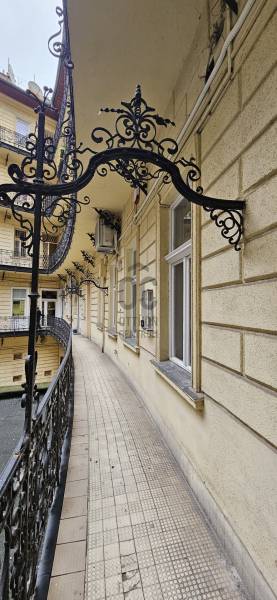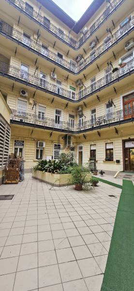 Nyugati téren, gyönyörű, 19. században épült házban eladó egy 1. emeleti 156 nm-es, tágas lakás.A polgári lakás jellemzői:- Tágas terek.- Nagy belmagasság.- Két lakássá alakított, de egybenyitható. ( Két bejárati ajtó, 4 szoba, 1 hall, 2 folyosó, 2 fürdő, 2 konyha)- Városi panoráma.- Irodának is kitűnő.- 4 méteres belmagasság.Ház jellemzői: - A 19. században épült ház kiváló állapotban van, polgári jellegének megfelelően szépen felújított.- Kilátás: 6 ablak a Nyugati tér panorámájára.- Tömegközlekedésileg is kitűnő az ingatlan elhelyezkedése. Nyugati pályaudvar, M3-as metró, villamosok (4-6) 1-2 perc sétára.- Bevásárlás: Westend Mall (2 perc séta)Amennyiben fontos Önnek a központi, mégis csendes elhelyezkedés, a jó közlekedés, ha szeretné, hogy vállalkozása felújított társasházban működjön, akkor erről nem maradjon le!Ez az ingatlan a \"Hűség csomag\" megbízási portfólióhoz tartozik. Részletek az Otthon Centrum weboldalán.