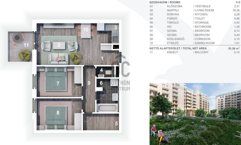 Budapest közkedvelt Duna-parti lakóparkjában, Marina parton, a 2021-ben átadott Marina Life 4.emeletén, 56 m² alapterületű + belső kertre néző terasszal rendelkező, NY-i fekvésű, prémium minőségű, letisztult, modern és fiatalos okosotthon eladó. Teremgarázs hely vásárlása opcionális. - 3 db klíma, elektromos redőnyök- a modern életre tervezték: telefonról vezérelhető komplett okosotthon rendszer- megfelelő tárolási kapacitás (külön gardróbhelyiség található)- a teraszra érve valóban zöld és csendes környezet fogad minketMARINA LIFE BY CORDIA (2021)A Cordia a közép - és kelet-európai régió egyik legnagyobb lakóingatlan-fejlesztő és befektető vállalatcsoportja. A társasház a 21. század technológiai megoldásaival felszerelt. A 2021-ben átadott Marina Life épületébe 4 lépcsőházból juthatunk be, lépcsőházanként 2 lift áll rendelkezésre. A lakóközösség és a közös képviselet a társasház ügyeit illetően tevékeny és összetartó.A belső udvarban gondozott látványkert szépíti az életteret, a lépcsőház takarítása mindennapos. A társasházban távfelügyelettel ellátott kamerarendszer gondoskodik a lakók biztonságáról.XIII.MARINA PARTA nagyvárosok folyóparti területei a legnépszerűbb lakóövezetek szerte a világon: ez Budapesten elsősorban a Duna-part XIII. kerületi szakaszán, a Marina Parton valósult meg. A Budapest szívében található exkluzív városrész a modern lakhatás legmagasabb szintjét képviseli, tökéletes választás azoknak, akik a kényelmet és a nagyvárosi életet egyaránt értékelik. A parkosított sétányok, a kiterjedt zöldfelületek, a sportolási lehetőségek és a kényelmi szolgáltatások széles választéka gondoskodik arról, hogy minden napját teljes mértékben élvezhesse.Amennyiben további információra van szüksége vagy megtekintené az ingatlant, várom hívását, a lakás rugalmasan megtekinthető!