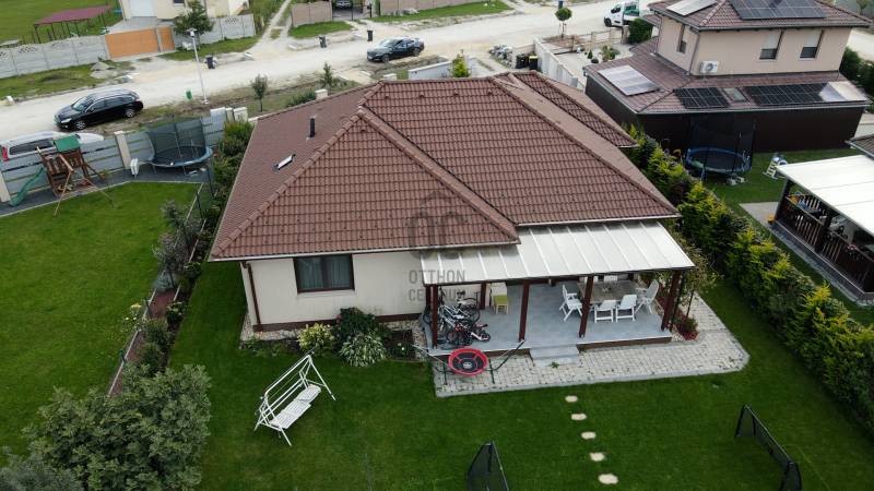 Soprontól mindössze néhány kilométerre, Harka egyik csendes utcájában kerül eladásra ez a 2018-ben épült, 120 m² lakóterű, földszintes családi ház, 890 m²-es, szépen parkosított telken.Az ingatlan elrendezése:tágas, amerikai konyhás nappali, közvetlen kijárattal a 15 m²-es fedett teraszra, klíma előkészítésselhárom hálószobafürdőszoba tusolóval és fürdőkáddal, külön WCkamra és háztartási helyiséga padláson pedig nagy rakodótér áll rendelkezésre.A ház műszaki tartalma korszerű: háromrétegű nyílászárók, alumínium redőnyök, mindenhol szúnyogháló, valamint gázcirkó fűtés padlófűtéssel és radiátorokkal biztosítja a kellemes hőérzetet egész évben. A gondozott kertben automata öntözőrendszer, konyhakert és kerti sütögető is helyet kapott.Az otthon központi eleme a naplementébe forduló fedett terasz.A település infrastruktúrája kiváló: bölcsőde, óvoda, iskola, posta, orvosi ellátás, üzletek és éttermek egyaránt megtalálhatók. A közösségi élet aktív, rendszeres rendezvényekkel, sportolási lehetőségekkel, túraútvonalakkal. A közelben Natura 2000 terület és egy gyönyörű horgásztó kínál kikapcsolódást a természet szerelmeseinek.Ez az ingatlan ideális választás azok számára, akik szeretnék a nyugodt, természetközeli életet élvezni, ugyanakkor Sopron közelségét és az osztrák határ gyors elérhetőségét is fontosnak tartják.Várom hívását!Hitelre van szüksége?Az Otthon Centrum az ország egyik legnagyobb és legmegbízhatóbb hitelközvetítőjeként, teljes körű és díjmentes hitelügyintézéssel, biztosításkötéssel áll rendelkezésére!Kérje személyre szabott ajánlatunkat Kollégáinktól!