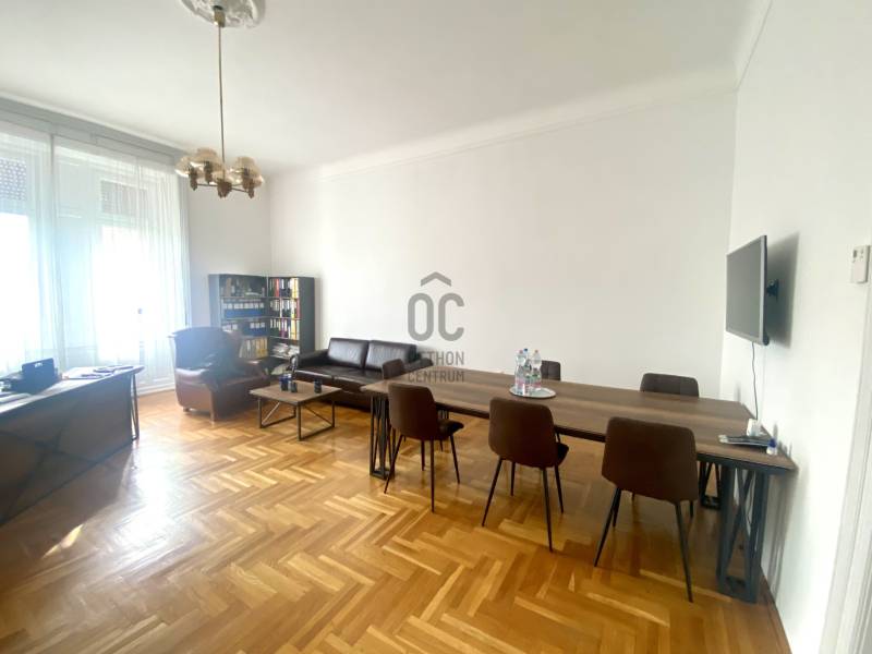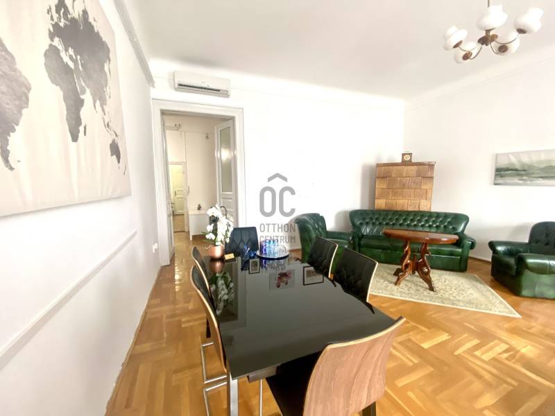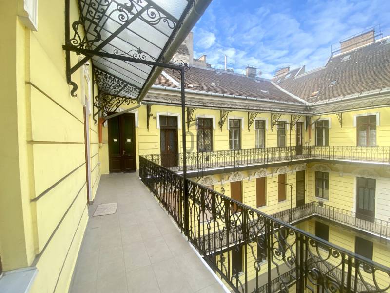 A nagyon szépen felújított 4. emeletes lakóház Hubert József tervei alapján épült 1898-ban.Az épületnek nemcsak a külső homlokzata impozáns, de belső udvari homlokzata is nagyon látványos. Az igényesen rendbe hozott épület a világörökség részét képezi, és közvetlen a világhírű Zsinagóga szomszédságában található.A lakás az épület 4.emeletén helyezkedik el. A liftből kilépve pár lépés után érjük el a lakás bejáratát. Addig is gyönyörködhetünk a belső udvar szépségében.A lakás 111nm-es ,hal+ 2 külön álló parkettás szobák, tágas előtér ahol jellenleg váróterem lett kialakítva, mert ügyvédi irodaként funkcionál. A szobák világossak és napfényesek, déli tájolásuknak köszönhetően.A szobákból egyedülálló kilátás nyílik a Zsinagógára.A ház folyamatos felújításokon esett át:2006-ban műszaki: villany- víz vezetékek és óra cserék2011-ben teljes tetőcsere, homlokzat, folyosó, lift, bejárati ajtóA ház rendjéről és tisztaságáról helyben lakó házfelügyelő gondoskodik.Lakás 2021- ben műszakilag teljes felújítást kapottFelújítások:- villany- víz- gáz vezetékek- mind a 3 óra ki lett cserélve- hűtő- fűtő klíma be lett szerelveLakás jellemzői:- téglaépítésű- belmagassága: 3.65m- 4. emelet/ lift van/- 111 nm- gázcirkó fűtés- + cserépkályha- hűtő- fűtő klíma- hal+ 2szoba- cserélt műanyag nyílászárok- 36-39nm amiből a nagyobb szobából+ 1 szoba leválasztható, mert dupla ablakos, és megosztható- konyha- előszoba- fürdőszoba+ káddal+ mosdó+ Wc- wc+ mosdó- kamra- korszerűsített lift- 10nm-es saját tároló- távirányítós kapu- jogfolytonosággal 1 parkoló tovább bérelhető havi 5000Ft-ért- közösköltség: 30.000Ft amiben a ház felújítási alap is benne vanA ház a belváros szívében, közvetlen a nemzetközi hírű Zsinagóga mellett található. Budapest városképének meghatározó épülete. Jellemző a környéken található épületekre, hogy neves építészek tervei alapján épültek és nagypolgári lakások sora található bennük.A környéken üzletek, éttermek, szórakozó helyek, bevásárlási lehetőséget biztosító üzletek sora található. De színház, mozi, bank és egyéb intézmények is bőségesen találhatók.Az utcában közlekedik a 74-es troli. De pár percre a háztól felszállhatunk a 2-es, 3-as metróra, a 47-es, 49-es villamosokra és a 7-es busz is a közelben jár. Egyszóval innen bárhová könnyen eljutunk tömegközlekedési eszközökkel.