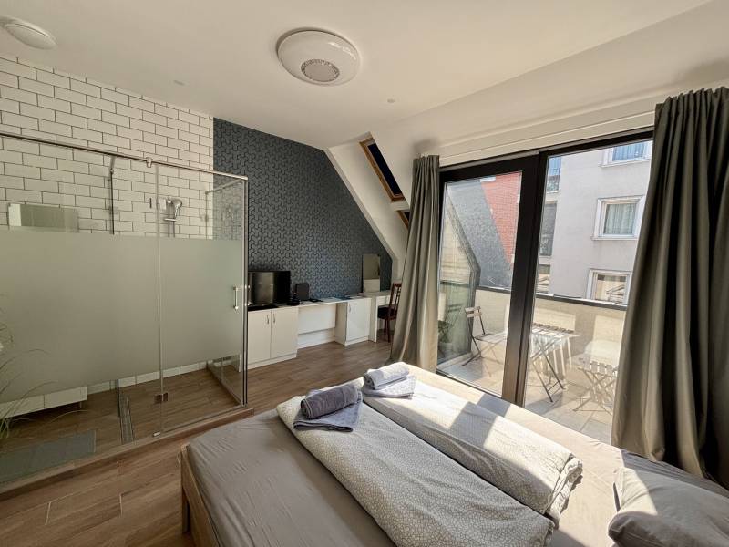 KIADÁSRA kínálom ezt a méltán közkedvelt DOB UTCÁBAN található, modern, 33 m² alapterületű, kiváló elrendezésű, napfényes, TERASZOS garzonlakást. KIVÁLÓ LEHETŐSÉG egyetemisták, illetve magyar, vagy akár külföldi egyedülállók, fiatal párok számára.Az ingatlan egy kívül-belül KORSZERŰSÍTETT, rendezett, esztétikus homlokzattal rendelkező, LIFTES társasház harmadik emeletén található, néhány évvel ezelőtt készült el ráépítéssel.A bejárati ajtón belépve az előtérbe érkezünk, ahonnan balra találjuk a gépesített, ablakos konyhát, előre továbbhaladva pedig a napfényes, stúdiólakás jellegű életteret, melyben helyet kapott egy stílusos, modern zuhanyzó. Található még itt dolgozósarok, illetve a hálótér. Innen nyílik egy utcára néző 3 m²-es terasz, melyen hangulatos városi kilátással, napfényben fogyaszthatjuk el reggeli kávénkat. Az ingatlanban a megfelelő hőmérsékletről korszerű hűtő-fűtő klíma, illetve elektromos fűtőpanel gondoskodik,  a meleg megtartását pedig a modern, dupla üvegű nyílászárók szavatolják.A lakás bútorozott, gépesített állapotban azonnal költözhető.A kiváló állapotú, ízlésesen kialakított ingatlan további előnye KIEMELKEDŐ LOKÁCIÓJA. Karnyújtásnyira van az Erzsébet-körút, illetve a Király utca, így a környéken minden szükséges szolgáltatás megtalálható, legyen az üzlet, szórakozóhely, étterem, vagy hangulatos kávézó. A közlekedés gördülékenységét biztosítja a 4-es 6-os villamosvonal, több közeli metróvonal (M1,M2,M3), illetve számos autóbuszjárat (105, 107,112,5,8E) biztosítja. Frekventált elhelyezkedése ellenére az ingatlan tetőtéri mivolta nyugalmat biztosít lakóinak.Az ingatlan bérleti díja 250.000 Forint/hó. A közös költség 10.000 Forint/hó.Az ingatlan kéthavi kaucióval, illetve egyhavi bérleti díjjal azonnal költözhető. Nem dohányzó, igényes bérlők jelentkezését várjuk, kisállat nem akadály. Amennyiben ez a KIEMELKEDŐ LEHETŐSÉG felkeltette az érdeklődését, keressen bizalommal, szívesen mutatom!AUER Ingatlan