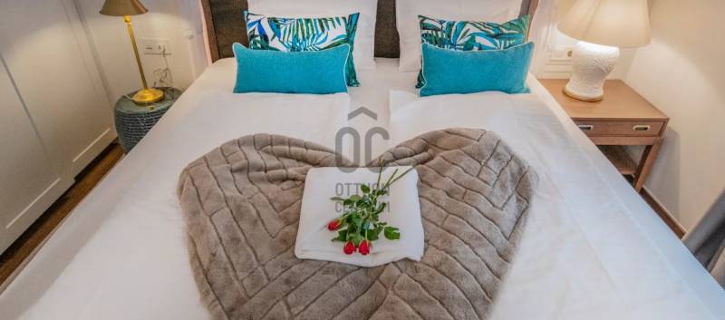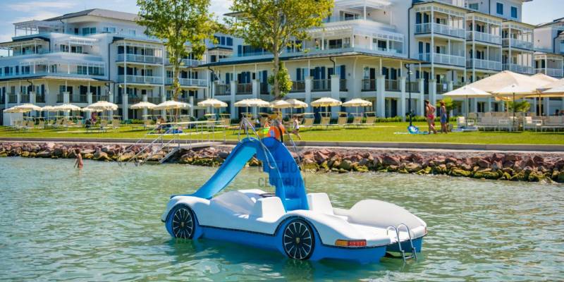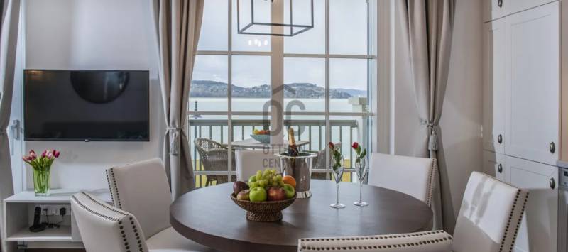 BalaLake egy életérzés, amelyet a család minden tagja hazavihet a szívében.Közvetlen a Balaton partján elhelyezkedő komplexum, amely zárt területen helyezkedik el, 0 - 24 órás portaszolgálattal, sorompós beléptető rendszerrel van kiépítve.Az ingatlan : lakás : 63 m2 + 2 db terasszal rendelkezik, amelyek szumma : 26,62 m2, a liftes társasház 1. emeletén helyezkedik el, Karibi hangulatú belsőépítészeti megoldásokkal, szállodai felszereltségű,exkluzív szinvonalú, teljesen bútorozott, gépesített, amelyet a vételár tartalmaz.Mesés balatoni panorámával rendelkezik, az ingatlan közvetlen vízparti, saját stranddal rendelkezik, vizisportolási lehetőség, játszóház, wellness, csupán 50 méterre található.A komplexum területén található még étterem, Mangoo bár, élőzenés vacsoraestékkel, E - bike kölcsönzési lehetőség, vizisportok, gyerekbarát, biztonságos játszótér, homokozó, hinta, mászóka, bizonyos napokon szakképzett animátor szórakoztatja a gyerekeket, amíg a szülők kikapcsolódhatnak, pihenhetnek.Itt minden egy helyen van, testet - lelket felfrissítő családi, baráti kikapcsolódáshoz.A lakásról : egy légtérben tágas konyha - étkező - nappali, 2 szoba, külön fürdő, wc , és a 2 db terasz, amelyből az egyik udvarra néz, de a Balaton is jól látszódik, a másik teljesen Balatonra néző, Tihanyi, Északi parti panorámával. SMART okos otthon kialakítású, távvezérléssel működik majdnem minden. Fűtése : házközpontú padló hőleadóval, lakásonként egyedileg szabályozható, mérhető, mennyezet hűtés + hűtő - fűtő klíma.Az ingatlan tulajdon, természetesen a tulajdonos rendelkezésére áll az év minden napjában, de a nem használatos időszakban ha szeretnék az üzemeltető hasznosítja.A lakáshoz egy teremgarázs tartozik, vásárlása kötelező, ára : 15 Mft