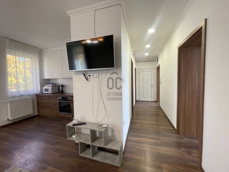 A Nagyerdő szívében kínálok eladásra egy 4 lakásos társasház I. emeleti, tulajdonlapon 95 nm-es ingatlanát.Az amerikaikonyhás nappali és 2 hálószobából álló otthon teljesen felújított, bútorozott, ide már csak költöznie kell!Fekvésének köszönhetően körbenapozott, világos, elosztása ideális pároknak, családosoknak egyaránt.A felújítás során fűtés, víz és villanyvezetékek cseréjén túl új nyílászárók és ajtók, valamint burkolatok kerültek beépítésre.A beépített konyha gépesített, gépekkel felszerelt (hűtő/fagyasztó, mosogatógép, mikrosütő....)A fürdőszoba tusolóval, beépített szekrényekkel és mosógéppel ellátott.A hálószobák szekrényekkel, ágyakkal berendezett.A fűtés gázkazánról történik, lapradiátor hőleadással, a hűtés klímával megoldott.A zöldövezeti környezet, sportlétesítmények, egyetemek közelsége nemcsak a fiatalok számára,de a családosoknak is kedvező szempont lehet még, az óvodák, iskolák sokasága a közelben.Tömegközlekedéssel, gépkocsival, gyalogosan, egyaránt könnyen megközelíthető.Otthonát a Nagyerdőn keresi???Jöjjön, hívjon és mutatom Önnek a lakást!