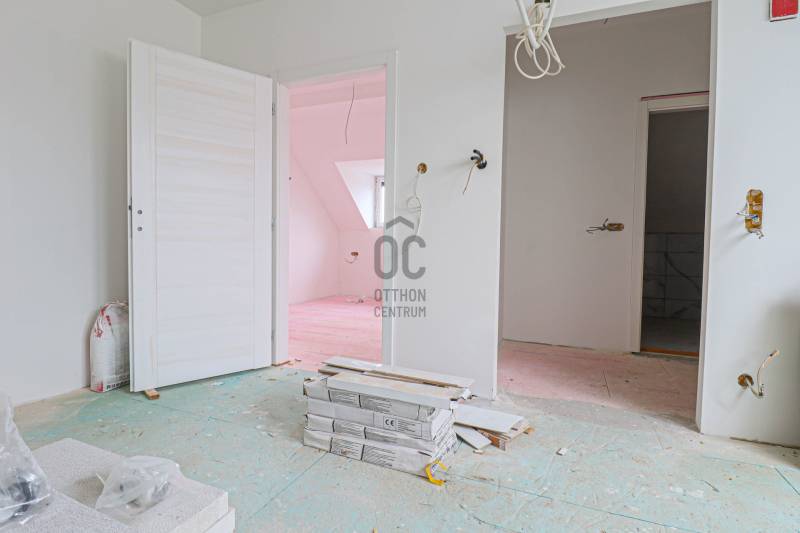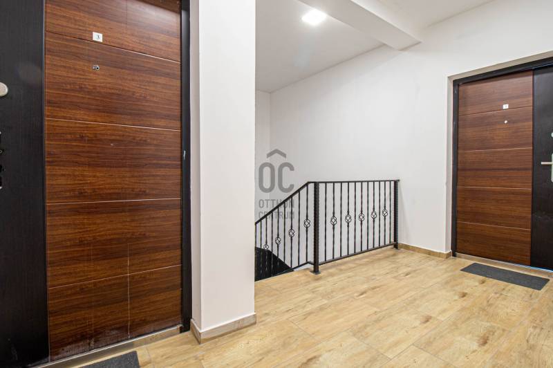 Modern elegancia és kimagasló műszaki tartalom – új építésű lakás eladó csendes, mégis kiváló elhelyezkedésű környezetbenELHELYEZKEDÉSA lakás egy 2023-ban épült, mindössze 5 lakásos társasház ELSŐ emeletén található, csendes, lakóparki környezetben, a főúttól csupán néhány percnyire. A környék tökéletes egyensúlyt kínál a kisvárosi nyugalom és a nagyvárosi kényelem között – buszmegálló és vasútállomás is kényelmes sétatávolságon belül elérhető.INGATLAN JELLEMZŐIA lakás bruttó 63 m², nettó 50 m² alapterületű.A társasház megépítése során kiemelt figyelmet fordítottak az energetikai hatékonyságra, hangszigetelésre és komfortérzetre.Jelenlegi állapotában az ingatlan szerkezetkész, a szaniterek, világítótestek és a konyhabútor még hiányoznak.A kivitelezés befejezése rövid időn belül megoldható, így a lakás gyorsan költözhetővé válik. Az ÁR TARTALMAZZA A KULCSRAKÉSZ ÁTADÁST!MŰSZAKI JELLEMZŐKFőfalak: 38 cm vastag falazat, kívülről 15 cm-es hungarocell szigetelésselBelső szigetelés: 10 cm vastag, kétkomponensű páraáteresztő, de nem légáteresztő hab – egyedülálló megoldás, amely hang- és hőszigetelésben is kiemelkedőNyílászárók: bukó-nyíló, háromrétegű üvegezésű ablakok, antracit alumínium redőnyökkel és szúnyoghálóval, elektromos redőnyvezérlés előkészítésselBeltéri ajtók: tömör faBejárati ajtók: acél szerkezetű, biztonságos kivitelBeléptetés: elektromos ujjlenyomat-olvasó kilinccsel – a modern technológia és a kényelem tökéletes találkozásaKOMFORT ÉS FELSZERELTSÉGA lakás elektromos PADLÓFŰTÉSSEL és hűtő-fűtő klímával rendelkezik, a mindennapi kényelmet pedig okosotthon rendszer biztosítja digitális vezérlőpanellel.A hálószobában egyedi, előre egyeztetett formavilágú beépített szekrény is a vételár részét képezi.A vevő szabadon választhatja meg a beépítésre kerülő világítótesteket, konyhapultot, háztartási gépeket, valamint a falak színvilágát, így az otthon teljes mértékben személyre szabható.PARKOLÁSA lakáshoz zárt udvari parkoló tartozik, amely lakásonként legalább HÁROM autó kényelmes parkolását biztosítja – ez a kategóriában ritkaságszámba megy.Ez az ingatlan azoknak ajánlott, akik nem csupán új otthont, hanem minőséget, biztonságot és kényelmet keresnek – kompromisszumok nélkül.Érdeklődj telefonon, és egyeztess időpontot a megtekintésre!KÉSZPÉNZES ÉRDEKLŐDŐKET VÁRUNK!Amennyiben hitelre van szüksége, az Otthon Centrum az ország egyik legnagyobb és legmegbízhatóbb hitelközvetítőjeként, teljes körű és díjmentes hitel ügyintézéssel áll rendelkezésére.Kérje személyre szabott ajánlatunkat!
