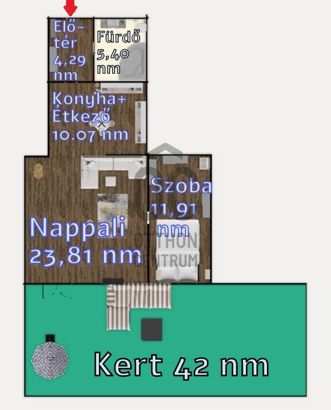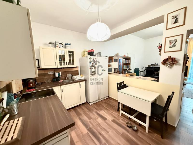Újpest szívében, mégis nyugodt, barátságos környezetben kínálunk megvételre egy 2012-ben épült, földszinti, 55 m²-es, 2 szobás, tégla lakást, melyhez 42 m²-es privát, bekerített kert tartozik – tökéletes hely a reggeli kávéhoz vagy egy csendes délutáni pihenéshez.Amit tudni érdemes:-a  lakás nappalija különleges, 336 cm-es belmagasságával igazán tágas és világos érzetet nyújt, míg a többi helyiségben 270 cm-es belmagasság biztosít kényelmes arányokat.- 16 lakásos, 40 cm-es Porotherm téglából épült, 10 cm-es szigeteléssel ellátott társasház korszerű, rendezett és állatbarát.- fűtés és melegvíz házközponti (BAXI kazánról), egyedi mérés alapján történik.- közös költség 30.000 Ft, amely tartalmazza a fűtést, melegvizet, felújítási alapot, takarítást, kertészt, elektromos kapu díját,  ( tetőfelújítás törlesztése plusz  20.000 Ft/hó még 3 évig).-a  lakáshoz saját, zárt autóbeálló tartozik, melyet elektromos kapun keresztül lehet megközelíteni.A közlekedés kiváló: buszmegállók 300 méteren belül, villamosmegálló 500 méterre, Újpest-központ pedig mindössze 3 megállóra található.Ez az ingatlan tökéletes választás mindazoknak, akik városi kényelemről nem akarnak lemondani, mégis vágynak egy nyugodt, zöld kertkapcsolatos otthonra, ahol a nap minden percét valóban ki lehet élvezni. Az ingatlan per- és tehermentes! Hívjon bátran, akár hétvégén is!Ez az ingatlan a \"Felező csomag\" megbízási portfólióhoz tartozik. Részletek az Otthon Centrum weboldalán.
