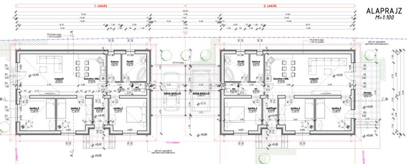 Új, modern és tágas lakóingatlanokat kínálunk eladásra Pest megyében, Veresegyházon, a Ráday utcában. Az ingatlanok alapterülete 93 nm, az első utcafronti ikerfél melyhez 350 nm-es telekrész tartozik és a hátsó ami 450 nm telekrésszel épül. Az ingatlanok 3 hálószobából, egy amerikai konyhás nappaliból, fürdőszobából, háztartási helyiségből, illetve egy fedett gépkocsi beállóból állnak.Az utcafronti ikerfél 109.990.000Ft, a hátsó pedig 129.990.000 Ft. Az ingatlanok közvetlenül NEM érintkeznek, csak a fedett parkoló köti össze az ingatlanokat!Az ingatlan állapota új építésű, így minden részletét az Ön igényeinek megfelelően alakítottuk ki. A fűtést egy 9kw-os BERETTA hőszívattyú fogja biztosítani, mely egy H-tarifás mérőóráról fog üzemelni.Műszaki leírás:• P30N+F téglafal• 10 centis Grafitos szigetelés• 25 centis födém szigetelés• hat légkamrás 3 rétegű műanyag thermo nyílászárók• antracit cserép• elektromos kapu előkészítésA burkolatok és a beltéri ajtók a vállalkozó által biztosított összeghatárig választhatóak:• Hidegburkolat: 5.000.-/m2• Melegburkolat: 5.000.-/m2• Beltéri ajtók: 60.000.-/db• Fürdőkád: 50.000.-• Csaptelepek: 15000.-/dbAz Ráday utca csendes és biztonságos környéken található, így ideális otthon lehet családok számára. Az autóval közlekedők számára a közeli autópálya könnyen elérhető, míg a tömegközlekedést igénybe vevőknek a város központjában található buszmegállók állnak rendelkezésre.A környék előnyeit tekintve, számos zöld terület és park található a közelben, így a természet szerelmesei számára is ideális helyszín lehet az ingatlan. Emellett a város központjában számos üzlet, szolgáltatás és étterem található, így a mindennapi élethez szükséges dolgok is könnyen elérhetőek.Ha kérdése merülne fel az ingatlanról, vagy érdeklődne további részletek iránt, bátran keressen minket.AZ INGATLAN CSOK+ KÉPES!Várható befejezés 2026. III. negyedévIntor Ingatlan – Otthont biztonságban!Irodánk rendelkezésére áll az értékesítés első lépésétől, egészen az utolsóig. Amennyiben valamelyik ingatlanunkat jelenlegi ingatlanja értékesítése után kívánja megvásárolni, vagy egy megbízható irodával kívánna együttműködni, amely teljeskörű ügyintézést biztosít, megfizethető áron, forduljon hozzánk bizalommal!